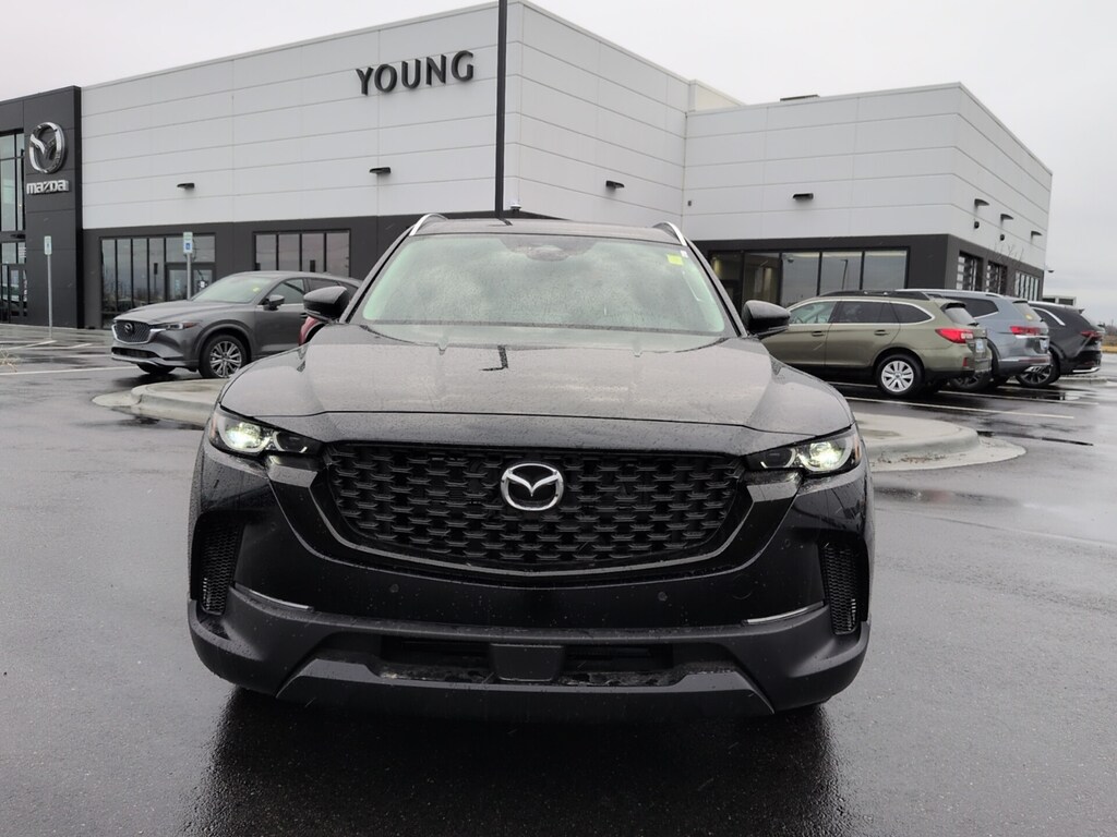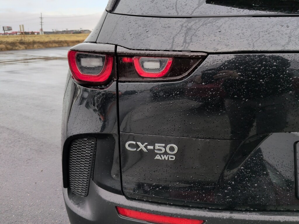 Jet Black Mica 2026 Mazda CX-50 Hybrid Preferred AWD CVT 2.5L 4-Cylinder 4-Wheel Disc Brakes, 8 Speakers, ABS brakes, Apple CarPlay and Android Auto, Auto High-beam Headlights, Dual front impact airbags, Dual front side impact airbags, Electronic Stability Control, Emergency communication system: MAZDA CONNECT, Front anti-roll bar, Front dual zone A/C, Front wheel independent suspension, Half Leatherette Seat Trim, Heated door mirrors, Heated Front Bucket Seats, Illuminated entry, Knee airbag, Leather Shift Knob, Leather steering wheel, Low tire pressure warning, Occupant sensing airbag, Overhead airbag, Power driver seat, Power Liftgate, Power moonroof, Power steering, Rain sensing wipers, Speed control, Telescoping steering wheel, Tilt steering wheel, Turn signal indicator mirrors, Wheels: 17" x 7J Aluminum Alloy Black Metallic Finish. 39/37 City/Highway MPG