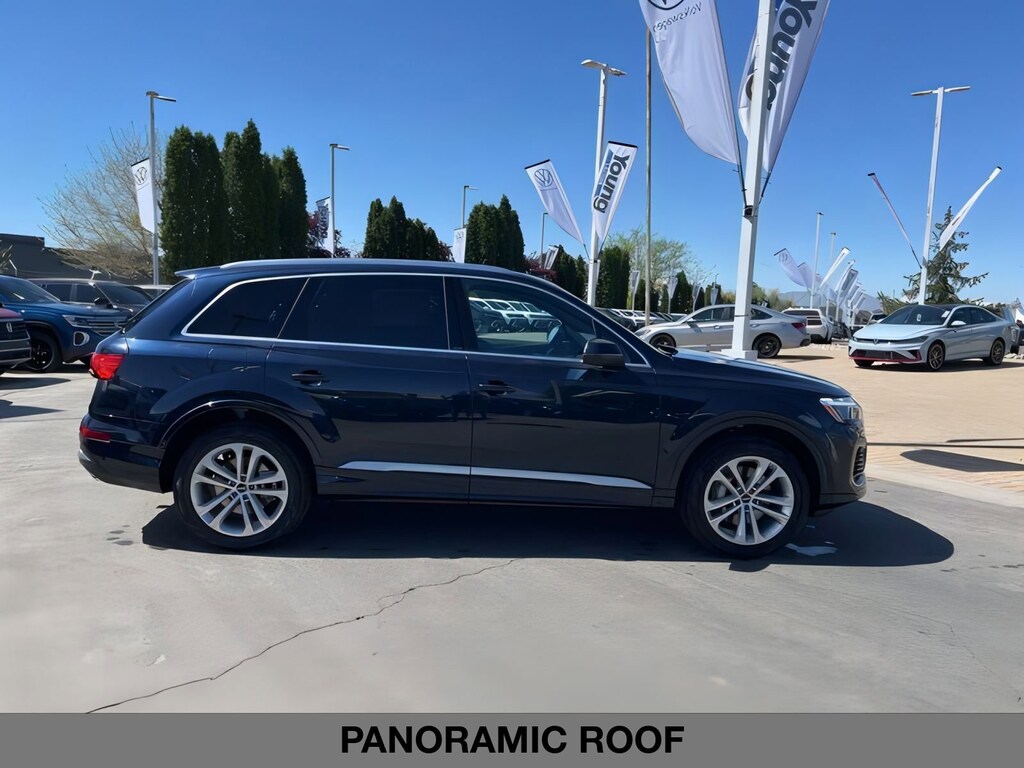 2025 Audi Q7 55 Premium Plus quattro Waitomo Blue Metallic quattro 3.0L TFSI 8-Speed Automatic with Tiptronic quattro 7-Pin Adapter, Bang & Olufsen Premium Sound System w/3D Sound, Convenience Package, Heated Steering Wheel, Illuminated Door Sills, LED Interior Lighting Package Plus, Premium Plus Package, Top View Camera System, Trailer Hitch, Wheels: 20" 5-Double-Spoke, Wireless Phone Charging Pad.