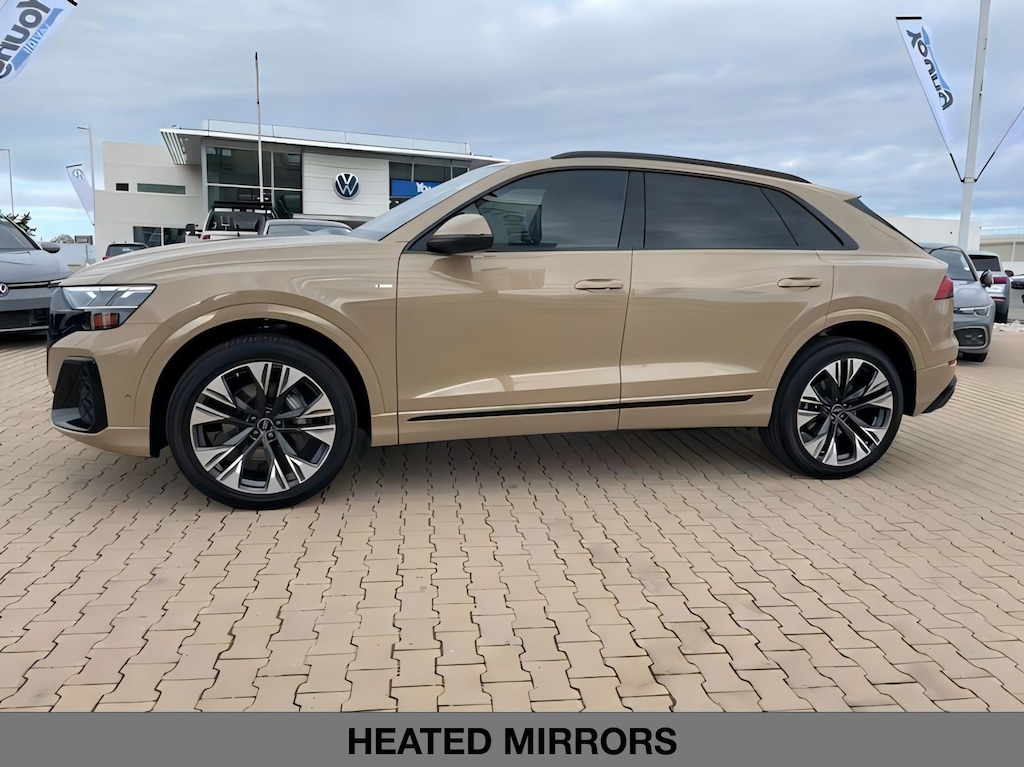 2025 Audi Q8 55 Premium Plus quattro Sakhir Gold Metallic quattro 3.0L V6 Turbocharged DOHC 24V LEV3-ULEV70 335hp 8-Speed Automatic with Tiptronic quattro 4-Zone Automatic Climate Control, Anthracite Gray Audi Rings, Bang & Olufsen 3D Premium Sound System, Black Exterior Trim, Black Optic Package, Convenience Package, Dark Chrome Exhaust Tips, Front Seats w/Ventilation, Heated Steering Wheel, Illuminated Door Sills, LED Interior Lighting Plus Package, Premium Plus Package, S Line Exterior, S Line Illuminated Door Sills, S Line Style Package, Top View Camera System w/Virtual 360 View, Wheels: 22" 5-Double-Arm Design Bicolor Finish, Wireless Phone Charging Pad.
