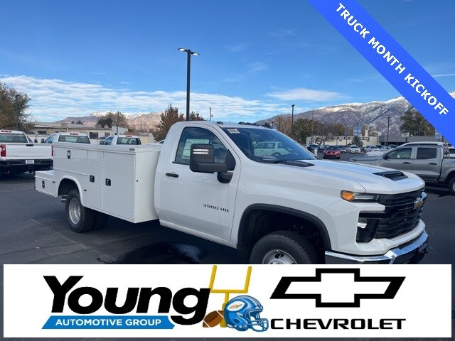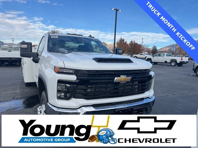 You are now working with the #1 Chevrolet Dealer in Northern Utah. We take pride in offering the best selection in the state at the very best price. With over 200 years of combined automotive experience between Chevrolet and the Young Automotive Group. Call and schedule your visit with us today. Think Young, Think Young Chevrolet 801-544-1234 â" 645 N Main Street Layton Utah 84041. To Qualify for the Young Chevrolet Advertised Price, customer must use Young Chevrolet Dealer Financing. Dealer is to arrange Financing for the vehicle. Cannot be combined with any other offers or discounts. Not all buyers will qualify for available offers, incentives or discounts based on Credit, Trade, Model, Zip Code, etc. Young Chevrolet Advertised Price does not include Taxes, States Fees, Registration Fees, Dealer Fees, or any Dealer Installed Accessories. Not all Customer will qualify. Contact dealer for details. 2D Standard Cab Summit White 4WD Duramax 6.6L V8 Turbodiesel 10-Speed Automatic Work Truck Price excludes any dealer installed accessories and includes: $500 - Customer Cash. Exp. 11/03/2025