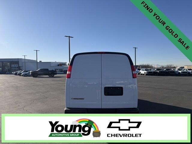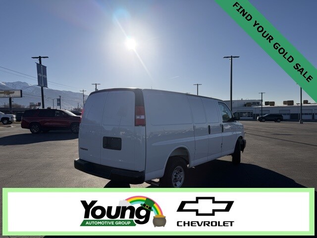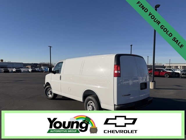 Thank you for working with Young Chevrolet. Everyone is Eligible for the Young Chevrolet Advertised Online Price. To Qualify for the Young Chevrolet Advertised Price, customer must use Young Chevrolet Dealer Financing. Dealer is to arrange Financing for the vehicle. Cannot be combined with any other offers or discounts. GM incentivized programs or customer outside financing are not combinable with Young Chevrolet Advertised Pricing. Young Chevrolet Advertised Price does not include Taxes, States Fees, Registration Fees, Dealer Fees, and any Dealer Installed Accessories. To Qualify for the Young Chevrolet Advertised Price, customer must use Young Chevrolet Dealer Financing. Dealer is to arrange Financing for the vehicle. Cannot be combined with any other offers or discounts. Not all buyers will qualify for available offers, incentives or discounts based on Credit, Trade, Model, Zip Code, etc. Young Chevrolet Advertised Price does not include Taxes, States Fees, Registration Fees, Dealer Fees, or any Dealer Installed Accessories. Not all Customer will qualify. Contact dealer for details. 3D Cargo Van Summit White RWD 6.6L V8 Automatic with Overdrive Work Van Cargo