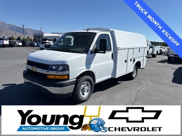 You are now working with the #1 Chevrolet Dealer in Northern Utah. We take pride in offering the best selection in the state at the very best price. With over 200 years of combined automotive experience between Chevrolet and the Young Automotive Group. Call and schedule your visit with us today. Think Young, Think Young Chevrolet 801-544-1234 â" 645 N Main Street Layton Utah 84041. To Qualify for the Young Chevrolet Advertised Price, customer must use Young Chevrolet Dealer Financing. Dealer is to arrange Financing for the vehicle. Cannot be combined with any other offers or discounts. Not all buyers will qualify for available offers, incentives or discounts based on Credit, Trade, Model, Zip Code, etc. Young Chevrolet Advertised Price does not include Taxes, States Fees, Registration Fees, Dealer Fees, or any Dealer Installed Accessories. Not all Customer will qualify. Contact dealer for details. 2D Chassis Summit White RWD 6.6L V8 8-Speed Automatic Work Van Cutaway