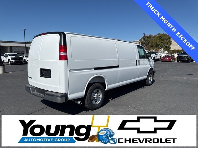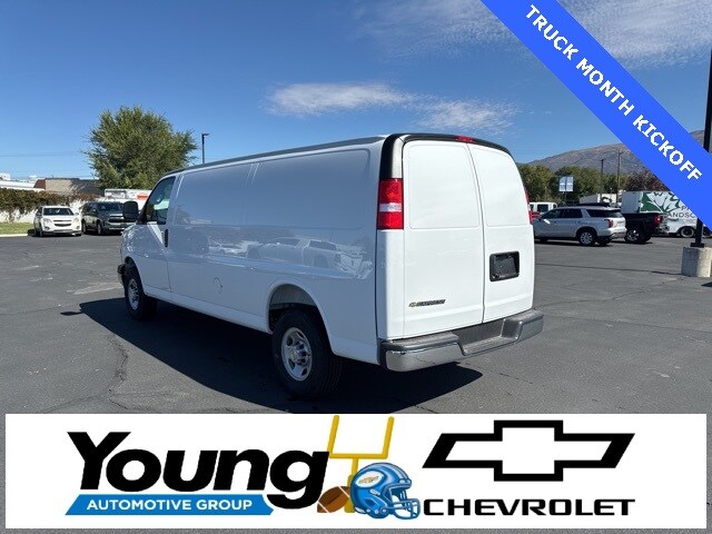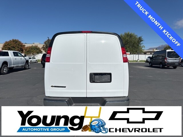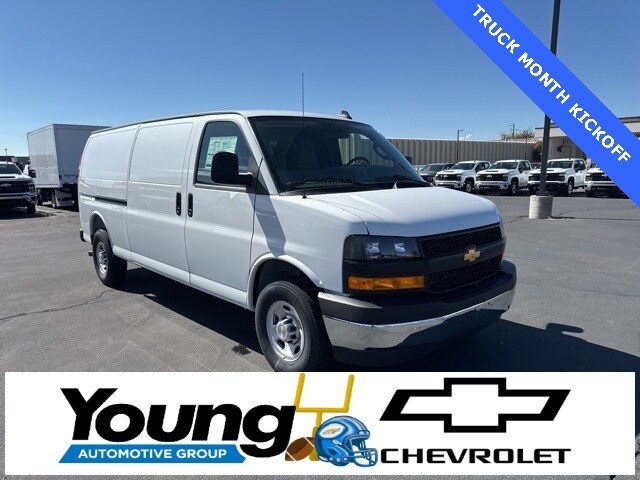 You are now working with the #1 Chevrolet Dealer in Northern Utah. We take pride in offering the best selection in the state at the very best price. With over 200 years of combined automotive experience between Chevrolet and the Young Automotive Group. Call and schedule your visit with us today. Think Young, Think Young Chevrolet 801-544-1234 â" 645 N Main Street Layton Utah 84041. To Qualify for the Young Chevrolet Advertised Price, customer must use Young Chevrolet Dealer Financing. Dealer is to arrange Financing for the vehicle. Cannot be combined with any other offers or discounts. Not all buyers will qualify for available offers, incentives or discounts based on Credit, Trade, Model, Zip Code, etc. Young Chevrolet Advertised Price does not include Taxes, States Fees, Registration Fees, Dealer Fees, or any Dealer Installed Accessories. Not all Customer will qualify. Contact dealer for details. 3D Extended Cargo Van Summit White RWD 6.6L V8 8-Speed Automatic with Overdrive Work Van Cargo