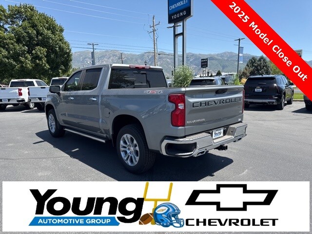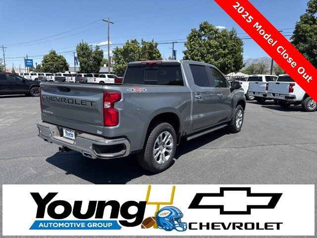 2025 Model Close Out!!! Everyone is Eligible for online price. To Qualify for the Young Chevrolet Advertised Price, customer must use Young Chevrolet Dealer Financing. Dealer is to arrange Financing for the vehicle. Cannot be combined with any other offers or discounts. Young Chevrolet Advertised Price does not include Taxes, States Fees, Registration Fees, Dealer Fees, or any Dealer Installed Accessories. You are now working with the #1 Chevrolet Dealer in Northern Utah. We take pride in offering the best selection in the state at the very best price. With over 200 years of combined automotive experience between Chevrolet and the Young Automotive Group. Call and schedule your visit with us today. Think Young, Think Young Chevrolet 801-544-1234 â" 645 N Main Street Layton Utah 84041. To Qualify for the Young Chevrolet Advertised Price, customer must use Young Chevrolet Dealer Financing. Dealer is to arrange Financing for the vehicle. Cannot be combined with any other offers or discounts. Not all buyers will qualify for available offers, incentives or discounts based on Credit, Trade, Model, Zip Code, etc. Young Chevrolet Advertised Price does not include Taxes, States Fees, Registration Fees, Dealer Fees, or any Dealer Installed Accessories. Not all Customer will qualify. Contact dealer for details. 4D Crew Cab Sterling Gray Metallic 4WD 3.0L I6 10-Speed Automatic LTZ Price excludes any dealer installed accessories and includes: $1000 - Bonus Cash. Exp. 11/03/2025 $2500 - Customer Cash. Exp. 11/03/2025