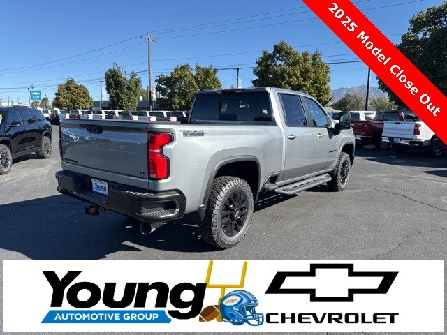 2025 Model Close Out!!! Everyone is Eligible for online price. To Qualify for the Young Chevrolet Advertised Price, customer must use Young Chevrolet Dealer Financing. Dealer is to arrange Financing for the vehicle. Cannot be combined with any other offers or discounts. Young Chevrolet Advertised Price does not include Taxes, States Fees, Registration Fees, Dealer Fees, or any Dealer Installed Accessories. You are now working with the #1 Chevrolet Dealer in Northern Utah. We take pride in offering the best selection in the state at the very best price. With over 200 years of combined automotive experience between Chevrolet and the Young Automotive Group. Call and schedule your visit with us today. Think Young, Think Young Chevrolet 801-544-1234 â" 645 N Main Street Layton Utah 84041. To Qualify for the Young Chevrolet Advertised Price, customer must use Young Chevrolet Dealer Financing. Dealer is to arrange Financing for the vehicle. Cannot be combined with any other offers or discounts. Not all buyers will qualify for available offers, incentives or discounts based on Credit, Trade, Model, Zip Code, etc. Young Chevrolet Advertised Price does not include Taxes, States Fees, Registration Fees, Dealer Fees, or any Dealer Installed Accessories. Not all Customer will qualify. Contact dealer for details. 4D Crew Cab Sterling Gray Metallic 4WD Duramax 6.6L V8 Turbodiesel 10-Speed Automatic LT Price excludes any dealer installed accessories and includes: $1000 - Customer Cash. Exp. 11/03/2025
