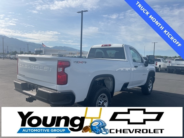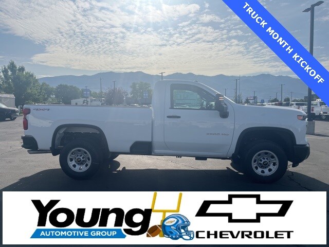 You are now working with the #1 Chevrolet Dealer in Northern Utah. We take pride in offering the best selection in the state at the very best price. With over 200 years of combined automotive experience between Chevrolet and the Young Automotive Group. Call and schedule your visit with us today. Think Young, Think Young Chevrolet 801-544-1234 â" 645 N Main Street Layton Utah 84041. To Qualify for the Young Chevrolet Advertised Price, customer must use Young Chevrolet Dealer Financing. Dealer is to arrange Financing for the vehicle. Cannot be combined with any other offers or discounts. Not all buyers will qualify for available offers, incentives or discounts based on Credit, Trade, Model, Zip Code, etc. Young Chevrolet Advertised Price does not include Taxes, States Fees, Registration Fees, Dealer Fees, or any Dealer Installed Accessories. Not all Customer will qualify. Contact dealer for details. 2D Standard Cab Summit White 4WD 6.6L V8 10-Speed Automatic Work Truck Price excludes any dealer installed accessories and includes: $500 - Customer Cash. Exp. 11/03/2025