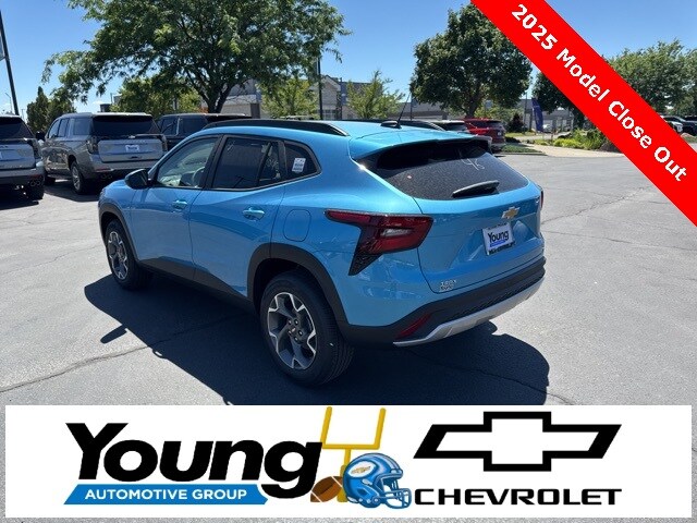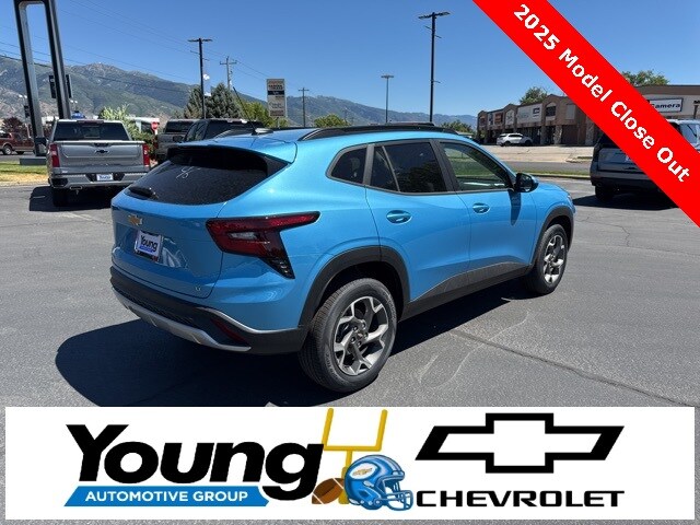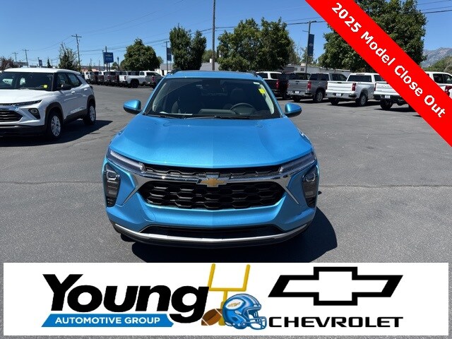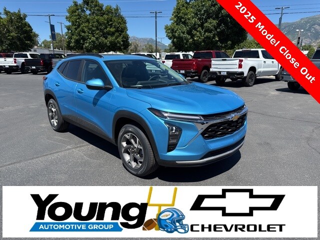 2025 Model Close Out!!! Everyone is Eligible for online price. To Qualify for the Young Chevrolet Advertised Price, customer must use Young Chevrolet Dealer Financing. Dealer is to arrange Financing for the vehicle. Cannot be combined with any other offers or discounts. Young Chevrolet Advertised Price does not include Taxes, States Fees, Registration Fees, Dealer Fees, or any Dealer Installed Accessories. You are now working with the #1 Chevrolet Dealer in Northern Utah. We take pride in offering the best selection in the state at the very best price. With over 200 years of combined automotive experience between Chevrolet and the Young Automotive Group. Call and schedule your visit with us today. Think Young, Think Young Chevrolet 801-544-1234 â" 645 N Main Street Layton Utah 84041. To Qualify for the Young Chevrolet Advertised Price, customer must use Young Chevrolet Dealer Financing. Dealer is to arrange Financing for the vehicle. Cannot be combined with any other offers or discounts. Not all buyers will qualify for available offers, incentives or discounts based on Credit, Trade, Model, Zip Code, etc. Young Chevrolet Advertised Price does not include Taxes, States Fees, Registration Fees, Dealer Fees, or any Dealer Installed Accessories. Not all Customer will qualify. Contact dealer for details. 4D Sport Utility Marina Blue Metallic FWD 1.2L Ecotec Turbo DOHC DI w/VVT 6-Speed Automatic LT 28/32 City/Highway MPG Awards: