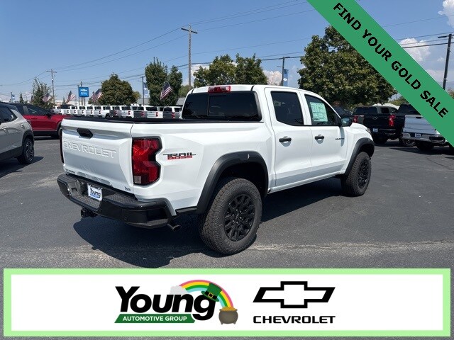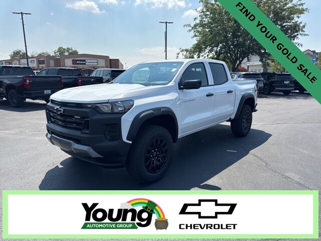 Thank you for working with Young Chevrolet. Everyone is Eligible for the Young Chevrolet Advertised Online Price. To Qualify for the Young Chevrolet Advertised Price, customer must use Young Chevrolet Dealer Financing. Dealer is to arrange Financing for the vehicle. Cannot be combined with any other offers or discounts. GM incentivized programs or customer outside financing are not combinable with Young Chevrolet Advertised Pricing. Young Chevrolet Advertised Price does not include Taxes, States Fees, Registration Fees, Dealer Fees, and any Dealer Installed Accessories. To Qualify for the Young Chevrolet Advertised Price, customer must use Young Chevrolet Dealer Financing. Dealer is to arrange Financing for the vehicle. Cannot be combined with any other offers or discounts. Not all buyers will qualify for available offers, incentives or discounts based on Credit, Trade, Model, Zip Code, etc. Young Chevrolet Advertised Price does not include Taxes, States Fees, Registration Fees, Dealer Fees, or any Dealer Installed Accessories. Not all Customer will qualify. Contact dealer for details. 4D Crew Cab Summit White 4WD 2.7L I4 Turbocharged DOHC 16V LEV3-ULEV50 310hp 8-Speed Automatic Trail Boss Price excludes any dealer installed accessories and includes: $500 - Customer Cash. Exp. 03/02/2026