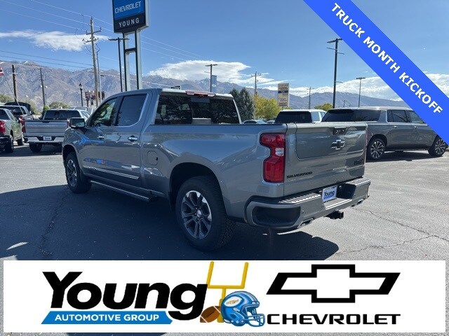 You are now working with the #1 Chevrolet Dealer in Northern Utah. We take pride in offering the best selection in the state at the very best price. With over 200 years of combined automotive experience between Chevrolet and the Young Automotive Group. Call and schedule your visit with us today. Think Young, Think Young Chevrolet 801-544-1234 â" 645 N Main Street Layton Utah 84041. To Qualify for the Young Chevrolet Advertised Price, customer must use Young Chevrolet Dealer Financing. Dealer is to arrange Financing for the vehicle. Cannot be combined with any other offers or discounts. Not all buyers will qualify for available offers, incentives or discounts based on Credit, Trade, Model, Zip Code, etc. Young Chevrolet Advertised Price does not include Taxes, States Fees, Registration Fees, Dealer Fees, or any Dealer Installed Accessories. Not all Customer will qualify. Contact dealer for details. 4D Crew Cab Sterling Gray Metallic 4WD 3.0L I6 10-Speed Automatic High Country Price excludes any dealer installed accessories and includes: $1000 - Bonus Cash. Exp. 11/03/2025 $1500 - Customer Cash. Exp. 11/03/2025