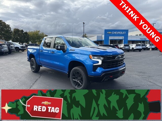 RED TAG SALES EVENT!!! Everyone is Eligible for Young Chevrolet Advertised Online Price. To Qualify for the Young Chevrolet Advertised Price, customer must use Young Chevrolet Dealer Financing. Dealer is to arrange Financing for the vehicle. Cannot be combined with any other offers or discounts. Young Chevrolet Advertised Price does not include Taxes, States Fees, Registration Fees, Dealer Fees, and any Dealer Installed Accessories. To Qualify for the Young Chevrolet Advertised Price, customer must use Young Chevrolet Dealer Financing. Dealer is to arrange Financing for the vehicle. Cannot be combined with any other offers or discounts. Not all buyers will qualify for available offers, incentives or discounts based on Credit, Trade, Model, Zip Code, etc. Young Chevrolet Advertised Price does not include Taxes, States Fees, Registration Fees, Dealer Fees, or any Dealer Installed Accessories. Not all Customer will qualify. Contact dealer for details. 4D Crew Cab Riptide Blue Metallic 4WD 3.0L I6 10-Speed Automatic LT Trail Boss Price excludes any dealer installed accessories and includes: $1750 - Bonus Cash. Exp. 01/02/2026 $2500 - Customer Cash. Exp. 01/02/2026