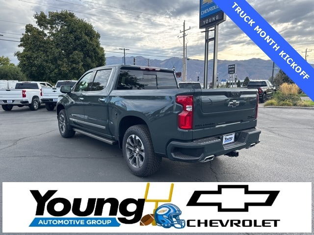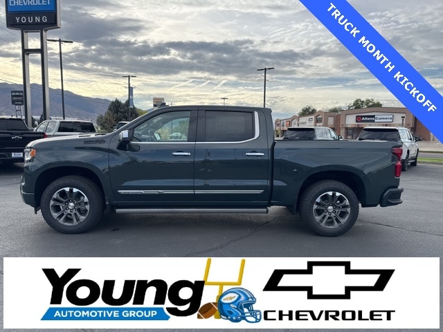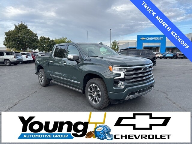 You are now working with the #1 Chevrolet Dealer in Northern Utah. We take pride in offering the best selection in the state at the very best price. With over 200 years of combined automotive experience between Chevrolet and the Young Automotive Group. Call and schedule your visit with us today. Think Young, Think Young Chevrolet 801-544-1234 â" 645 N Main Street Layton Utah 84041. To Qualify for the Young Chevrolet Advertised Price, customer must use Young Chevrolet Dealer Financing. Dealer is to arrange Financing for the vehicle. Cannot be combined with any other offers or discounts. Not all buyers will qualify for available offers, incentives or discounts based on Credit, Trade, Model, Zip Code, etc. Young Chevrolet Advertised Price does not include Taxes, States Fees, Registration Fees, Dealer Fees, or any Dealer Installed Accessories. Not all Customer will qualify. Contact dealer for details. 4D Crew Cab Cypress Gray 4WD 3.0L I6 10-Speed Automatic High Country Price excludes any dealer installed accessories and includes: $1000 - Bonus Cash. Exp. 11/03/2025 $1500 - Customer Cash. Exp. 11/03/2025