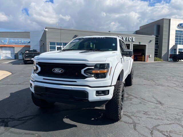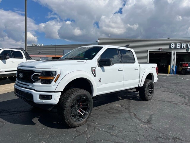 2024 Ford F-150 Black Widow Edition a bold, lifted truck that blends aggressive off-road styling with modern tech and comfort. This beast features a factory-authorized Black Widow package including a 6-inch suspension lift, 20" Black Widow wheels wrapped in 35" all-terrain tires, performance exhaust, and exclusive Black Widow badging and styling. Powered by a 5.0L V8 and paired with a 10-speed automatic, its as strong as it looks. The truck also boasts premium interior upgrades like leather-trimmed seats, custom red stitching, Black Widow gauges, and a large touchscreen with SYNC 4 and Apple CarPlay/Android Auto.