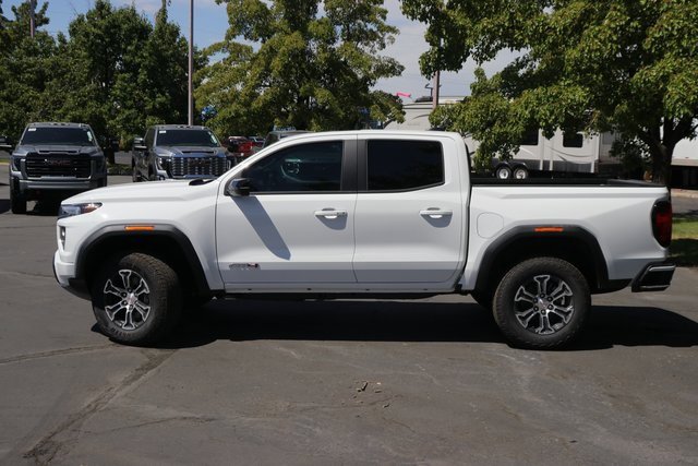 Inside, the Canyon AT4 keeps the adventure going with a premium, driver-focused interior built for comfort and control. Durable yet refined materials, modern tech, and an intuitive infotainment system ensure your drive is just as smooth as the trails are wild. With enhanced ground clearance, skid plates, and off-road-tuned suspension, this truck doesnt just talk toughit walks it. Add in features like wireless Apple CarPlay/Android Auto, trailering tech, and advanced safety systems, and youve got a truck thats ready for everything. Just note: price does not include any dealer-installed options/accessories, and new vehicle pricing may include rebates and manufacturer incentives, but not all buyers will qualify. Tax, title, and license fees are extra, so stop by the dealership for full pricing details. If youre ready to downsize your truck without downsizing your capability, the Canyon AT4 is your go-anywhere answer. Must trade in 2016 or newer with 80,000 miles or less.. Branded/salvage title will not qualify.