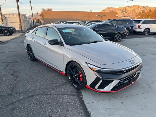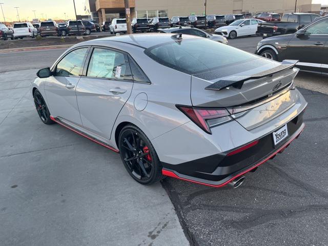 Cyber Gray 2026 Hyundai Elantra N FWD 6-Speed Manual 2.0L 4-Cylinder Turbocharged 21/29 City/Highway MPG ABS brakes, Alloy wheels, Compass, Electronic Stability Control, Front dual zone A/C, Heated door mirrors, Heated front seats, Illuminated entry, Low tire pressure warning, Navigation System, Remote keyless entry, Traction control.