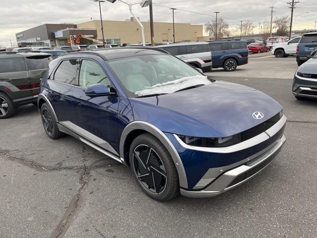 Cosmic Blue 2026 Hyundai IONIQ 5 Limited AWD 1-Speed Automatic Electric Motor 110/87 City/Highway MPG Price includes the following incentives, not all customers will qualify. See dealer for details. : $1500 - Hyundai HMF Dealer Choice : $1500 discount and 5.49% APR for 24 months. $44.09 per $1000 financed. Available to well qualified buyers who finance through Hyundai Motor Finance. H704. Exp. 01/02/2026