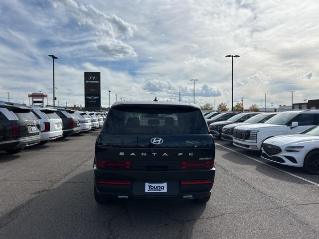 Phantom Black 2026 Hyundai Santa Fe Hybrid SE AWD 6-Speed Automatic with Shiftronic I4 18" x 7.5J Alloy Wheels, ABS brakes, Active Cruise Control, Alloy wheels, Electronic Stability Control, Emergency communication system, Front dual zone A/C, Heated door mirrors, Illuminated entry, Low tire pressure warning, Power Liftgate, Remote keyless entry, Traction control. Price includes the following incentives, not all customers will qualify. See dealer for details. : $3000 - Hyundai HMF Dealer Choice : $3000 discount and 5.99% APR for 24 months. $44.32 per $1000 financed. Available to well qualified buyers who finance through Hyundai Motor Finance. H704. Exp. 11/03/2025