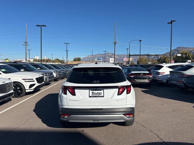 Creamy White Pearl 2026 Hyundai Tucson Hybrid SEL AWD 6-Speed Automatic 1.6L I4 DGI Hybrid Turbocharged DOHC 16V LEV3-SULEV30 37/36 City/Highway MPG Price includes the following incentives, not all customers will qualify. See dealer for details. : $3000 - Hyundai HMF Dealer Choice : $3000 discount and 5.49% APR for 24 months. $44.09 per $1000 financed. Available to well qualified buyers who finance through Hyundai Motor Finance. H704. Exp. 12/01/2025