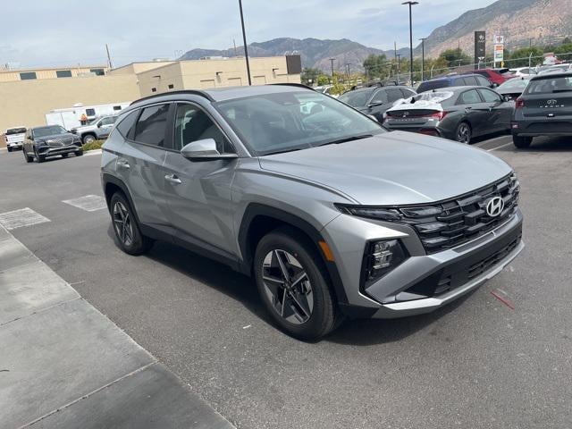 Shimmering Silver 2026 Hyundai Tucson SEL AWD 8-Speed Automatic with SHIFTRONIC 2.5L I4 DGI DOHC 16V LEV3-SULEV30 187hp 24/30 City/Highway MPG 18" x 7.5J Alloy Wheels, ABS brakes, Active Cruise Control, Alloy wheels, Electronic Stability Control, Front dual zone A/C, Heated door mirrors, Heated Front Bucket Seats, Heated front seats, Illuminated entry, Low tire pressure warning, Navigation System, Power Liftgate, Power moonroof, Remote keyless entry, Traction control. Price includes the following incentives, not all customers will qualify. See dealer for details. : $1500 - Hyundai HMF Dealer Choice : $1500 discount and 5.99% APR for 24 months. $44.32 per $1000 financed. Available to well qualified buyers who finance through Hyundai Motor Finance. H704. Exp. 11/03/2025
