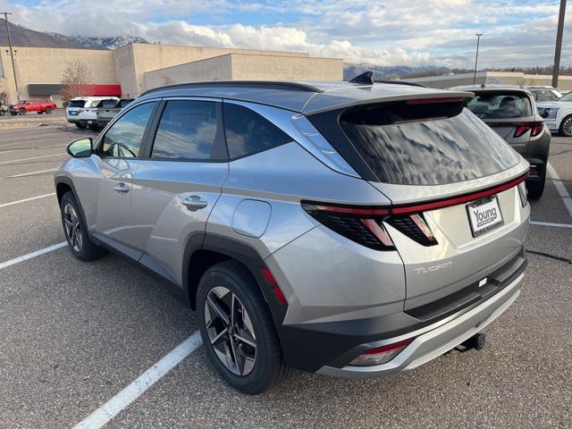 Shimmering Silver 2026 Hyundai Tucson SEL Premium AWD 8-Speed Automatic with SHIFTRONIC 2.5L I4 DGI DOHC 16V LEV3-SULEV30 187hp 24/30 City/Highway MPG Price includes the following incentives, not all customers will qualify. See dealer for details. : $2750 - Hyundai HMF Dealer Choice : $2750 discount and 5.49% APR for 24 months. $44.09 per $1000 financed. Available to well qualified buyers who finance through Hyundai Motor Finance. H704. Exp. 01/02/2026