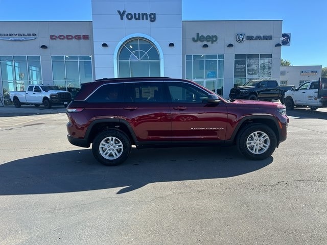 Velvet Red Pearlcoat 2025 Jeep Grand Cherokee Laredo 4WD 8-Speed Automatic 3.6L V6 24V VVT 19/26 City/Highway MPG NAVIGATION, NON SMOKER, REAR CAMERA, APPLE CARPLAY/ANDROID AUTO, BLUETOOTH, 4WD, 115V Auxiliary Power Outlet, 4-Wheel Disc Brakes, 6 Speakers, ABS brakes, Air Conditioning, Alloy wheels, AM/FM radio: SiriusXM, Anti-whiplash front head restraints, Automatic temperature control, Brake assist, Bumpers: body-color, Cloth Seats, Compass, Delay-off headlights, Driver door bin, Driver vanity mirror, Dual front impact airbags, Dual front side impact airbags, Electronic Stability Control, Emergency communication system, Four wheel independent suspension, Front anti-roll bar, Front Bucket Seats, Front Center Armrest w/Storage, Front dual zone A/C, Front License Plate Bracket, Front reading lights, Fully automatic headlights, Heated door mirrors, Heated Front Seats, Heated Steering Wheel, Illuminated entry, Knee airbag, Low tire pressure warning, Luxury Tech Group I, Model Year Tracking, Normal Duty Suspension, Occupant sensing airbag, Outside temperature display, Overhead airbag, Overhead console, Panic alarm, ParkView Rear Back-Up Camera, Passenger door bin, Passenger vanity mirror, Power door mirrors, Power driver seat, Power Liftgate, Power steering, Power windows, Quick Order Package 23A Laredo, Radio data system, Radio: Uconnect 5 w/8.4" Display, Rain Sensitive Windshield Wipers, Rear anti-roll bar, Rear reading lights, Rear window defroster, Rear window wiper, Remote keyless entry, Remote Start System, Satellite Radio, Secondary Active Grille Shutters, Security system, Selectable Tire Fill Alert, Speed control, Speed-Sensitive Wipers, Split folding rear seat, Spoiler, Steering wheel mounted audio controls, Tachometer, Telescoping steering wheel, Tilt steering wheel, Traction control, Trip computer, Variably intermittent wipers, Voltmeter, Wheels: 17" x 6.5" Fully Painted Aluminum, Wireless Charging Pad. Price includes: $1000 - 2025 National Grand Cherokee Loyalty Retail Bonus Cash . Exp. 11/03/2025 $1000 - Driveability / Automobility Program. Exp. 01/05/2026 $1750 - 2025 National Retail Bonus Cash . Exp. 11/03/2025 $500 - 2025 National 2025 First Responder Bonus Cash. Exp. 01/05/2026 $500 - 2025 National 2025 Military Bonus Cash. Exp. 01/05/2026 $500 - 2025 National Jeep Monopoly Money Bonus Cash . Exp. 11/03/2025