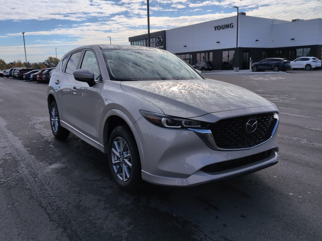 Platinum Quartz Metallic 2025 Mazda CX-5 2.5 S Preferred Package AWD 6-Speed Automatic SKYACTIV® 2.5L 4-Cylinder DOHC 16V Air Conditioning, All-Weather Floor Mats, Apple CarPlay and Android Auto, Auto High-beam Headlights, Auto-dimming Rear-View mirror, Brake assist, Dual front impact airbags, Dual front side impact airbags, Electronic Stability Control, Emergency communication system: MAZDA CONNECT, Four wheel independent suspension, Front anti-roll bar, Front dual zone A/C, Garage door transmitter: HomeLink, Heated Front Bucket Seats, Illuminated entry, Leather Seat Trim, Leather Shift Knob, Leather steering wheel, Memory seat, Occupant sensing airbag, Overhead airbag, Power door mirrors, Power driver seat, Power Liftgate, Power moonroof, Power passenger seat, Rain sensing wipers, Rear anti-roll bar, Remote keyless entry, Speed control, Telescoping steering wheel, Tilt steering wheel, Turn signal indicator mirrors, Wheels: 17" x 7J Aluminum Alloy. 26/30 City/Highway MPG