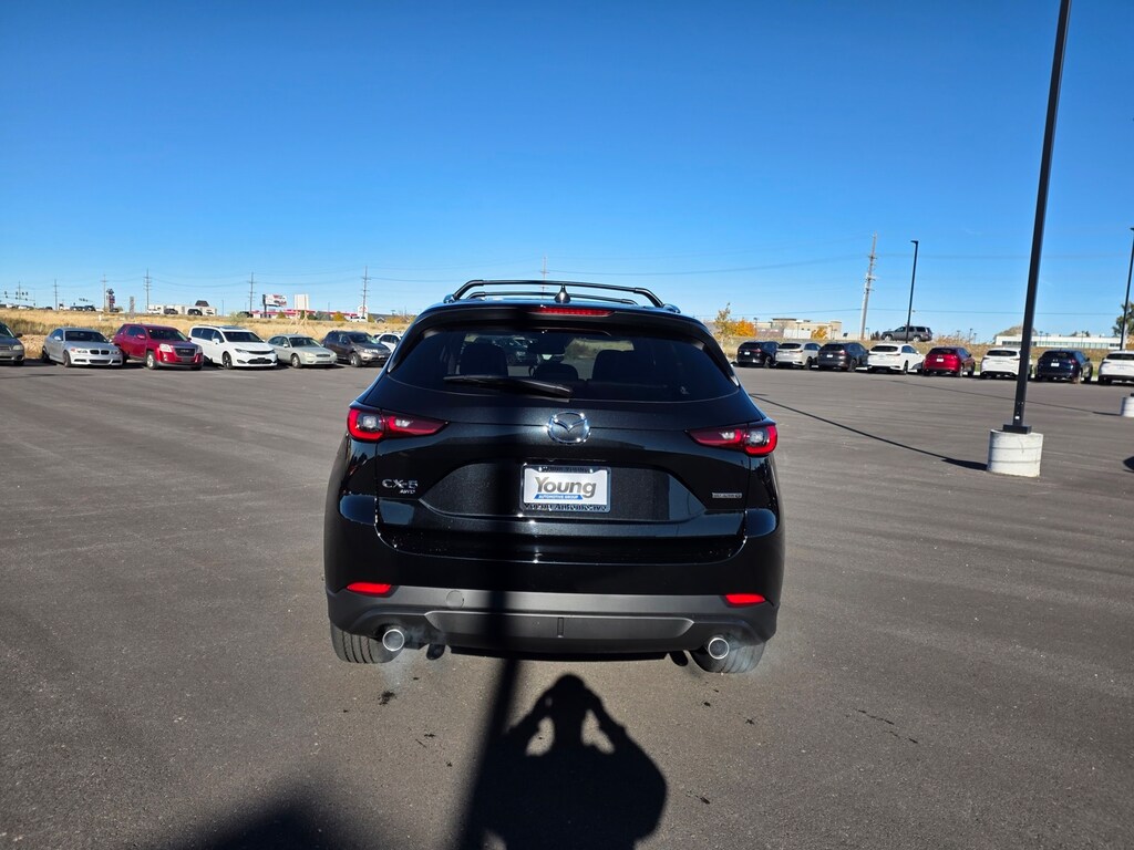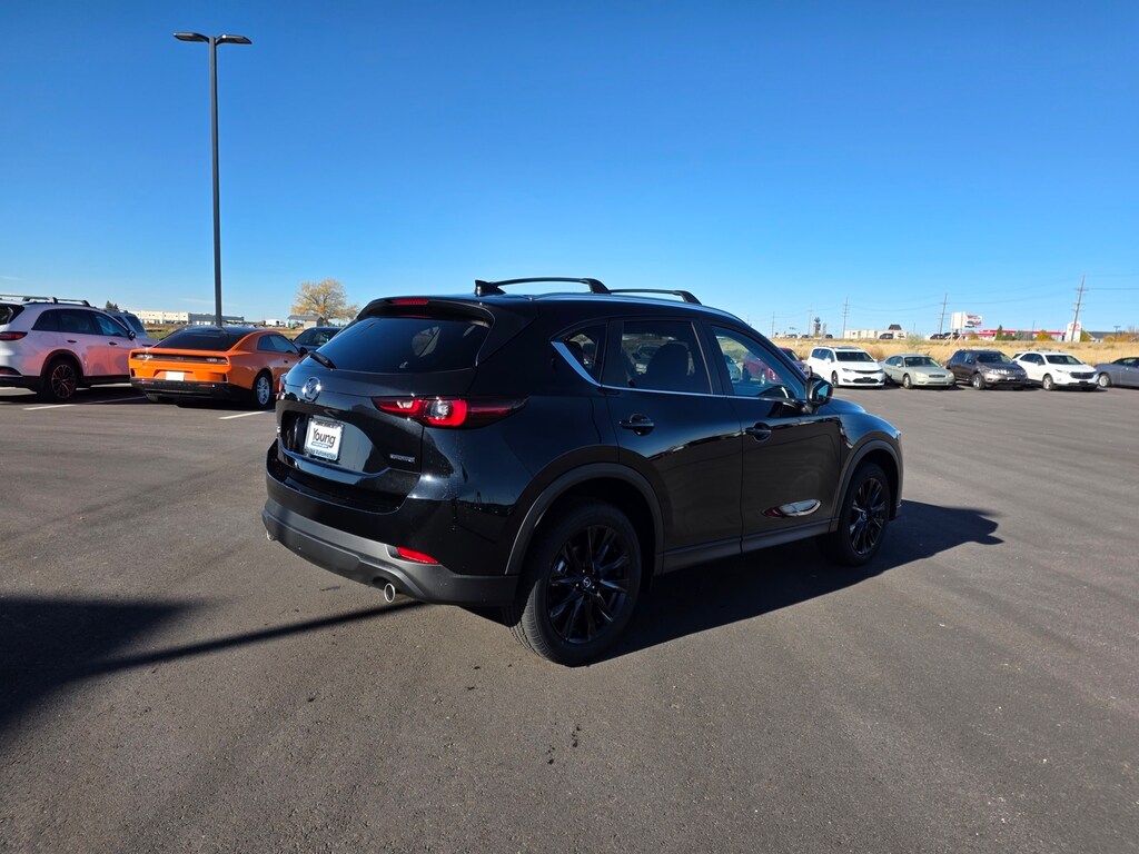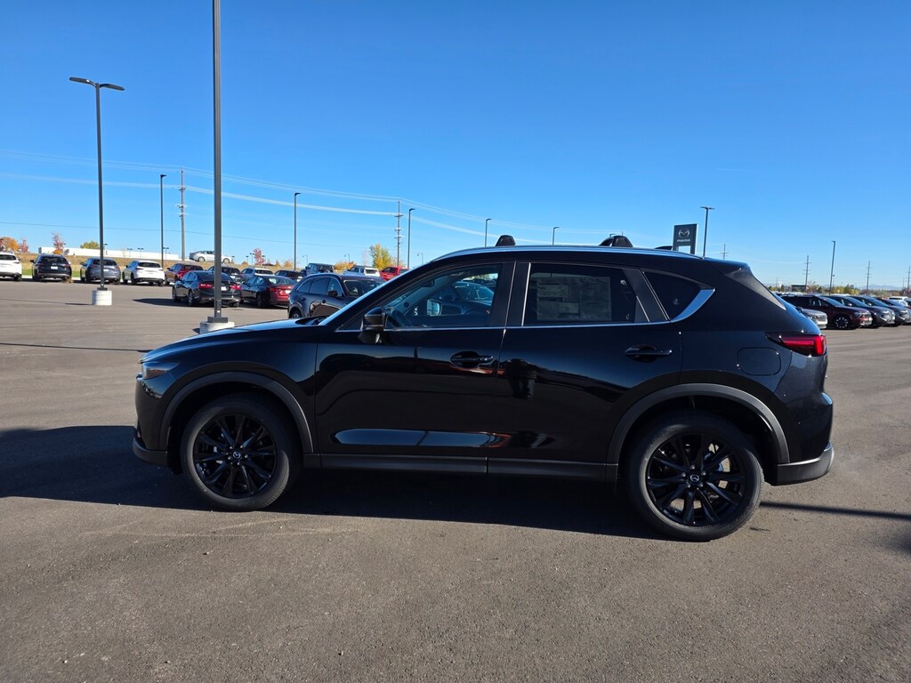 Jet Black Mica 2025 Mazda CX-5 2.5 S Carbon Edition AWD 6-Speed Automatic SKYACTIV® 2.5L 4-Cylinder DOHC 16V Apple CarPlay and Android Auto, Auto High-beam Headlights, Auto-dimming Rear-View mirror, Brake assist, Dual front impact airbags, Dual front side impact airbags, Electronic Stability Control, Emergency communication system: MAZDA CONNECT, Four wheel independent suspension, Front anti-roll bar, Front dual zone A/C, Garage door transmitter: HomeLink, Heated Front Bucket Seats, Illuminated entry, Leather Seat Trim, Leather Shift Knob, Leather steering wheel, Memory seat, Occupant sensing airbag, Overhead airbag, Power door mirrors, Power driver seat, Power Liftgate, Power moonroof, Power passenger seat, Rain sensing wipers, Rear anti-roll bar, Remote keyless entry, Roof Rails & Cross Bars Package, Speed control, Speed-sensing steering, Telescoping steering wheel, Tilt steering wheel, Turn signal indicator mirrors, Wheels: 19" x 7J Aluminum Alloy. 26/30 City/Highway MPG