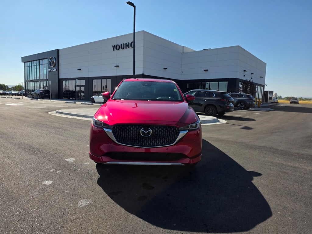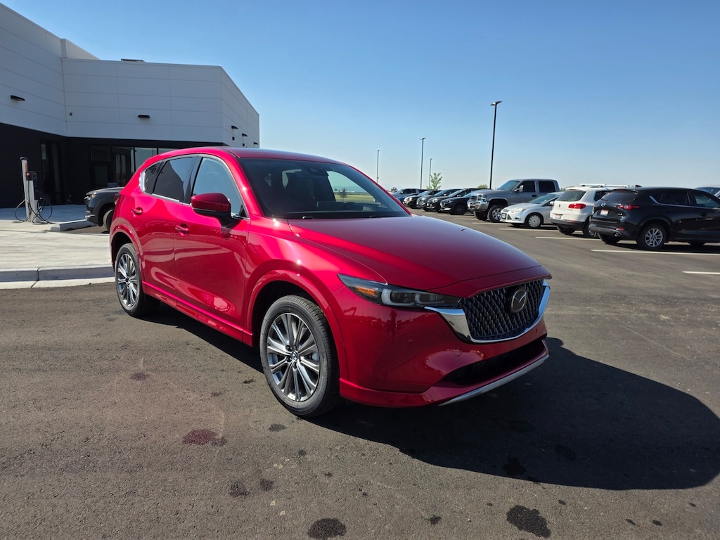 Soul Red Crystal Metallic 2025 Mazda CX-5 2.5 Turbo Signature AWD 6-Speed Automatic 2.5L I4 Apple CarPlay and Android Auto, Auto High-beam Headlights, Auto-dimming Rear-View mirror, Dual front impact airbags, Dual front side impact airbags, Emergency communication system: MAZDA CONNECT, Four wheel independent suspension, Front anti-roll bar, Front Bucket Seats, Front dual zone A/C, Garage door transmitter: HomeLink, Genuine wood dashboard insert, Genuine wood door panel insert, Heads-Up Display, Heated door mirrors, Heated front seats, Heated rear seats, Heated steering wheel, Illuminated entry, Leather steering wheel, Memory seat, Nappa Leather Seat Trim, Occupant sensing airbag, Overhead airbag, Power door mirrors, Power driver seat, Power Liftgate, Power moonroof, Power passenger seat, Rain sensing wipers, Rear anti-roll bar, Remote keyless entry, Turn signal indicator mirrors, Ventilated front seats, Wheels: 19" x 7J Aluminum Alloy. 22/27 City/Highway MPG