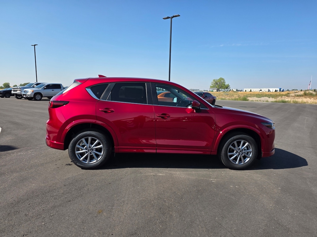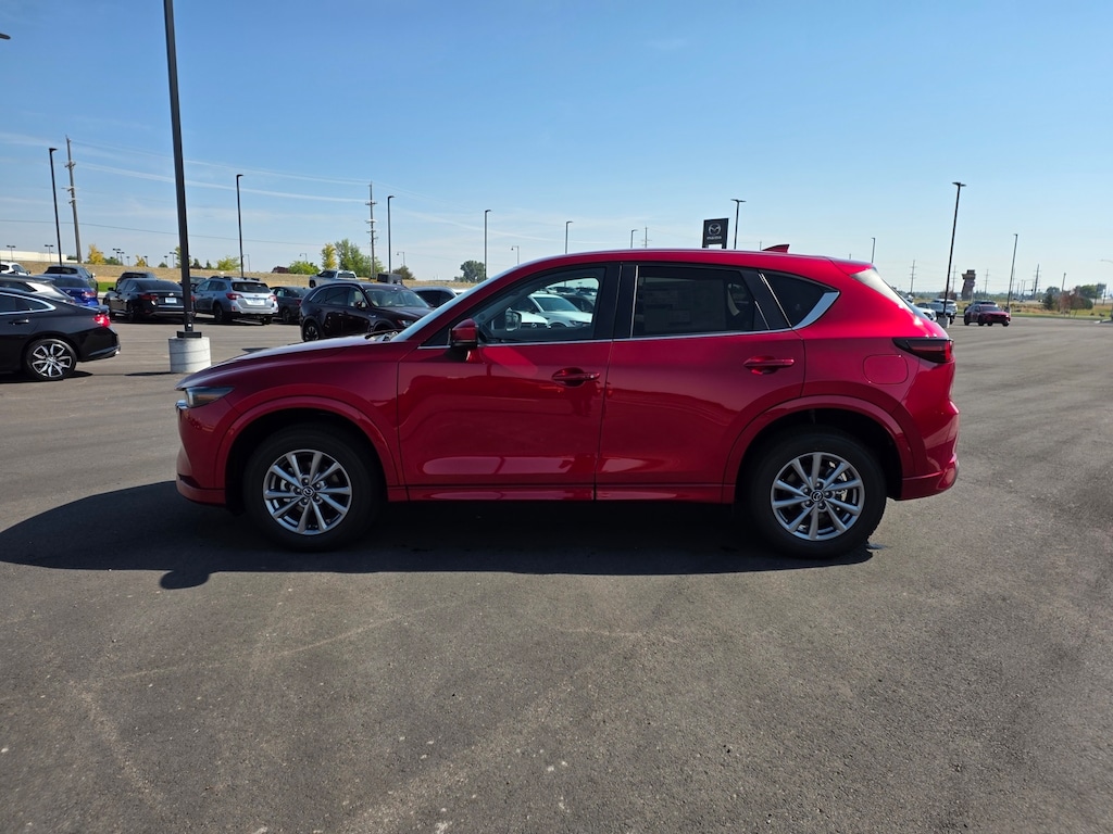 Soul Red Crystal Metallic 2025 Mazda CX-5 2.5 S Preferred Package AWD 6-Speed Automatic SKYACTIV® 2.5L 4-Cylinder DOHC 16V ABS brakes, Apple CarPlay and Android Auto, Auto-dimming Rear-View mirror, Electronic Stability Control, Front dual zone A/C, Garage door transmitter: HomeLink, Heated Front Bucket Seats, Illuminated entry, Leather Seat Trim, Leather Shift Knob, Leather steering wheel, Low tire pressure warning, Power Liftgate, Power moonroof, Power passenger seat, Remote keyless entry, Telescoping steering wheel, Tilt steering wheel, Traction control, Wheels: 17" x 7J Aluminum Alloy. 26/30 City/Highway MPG