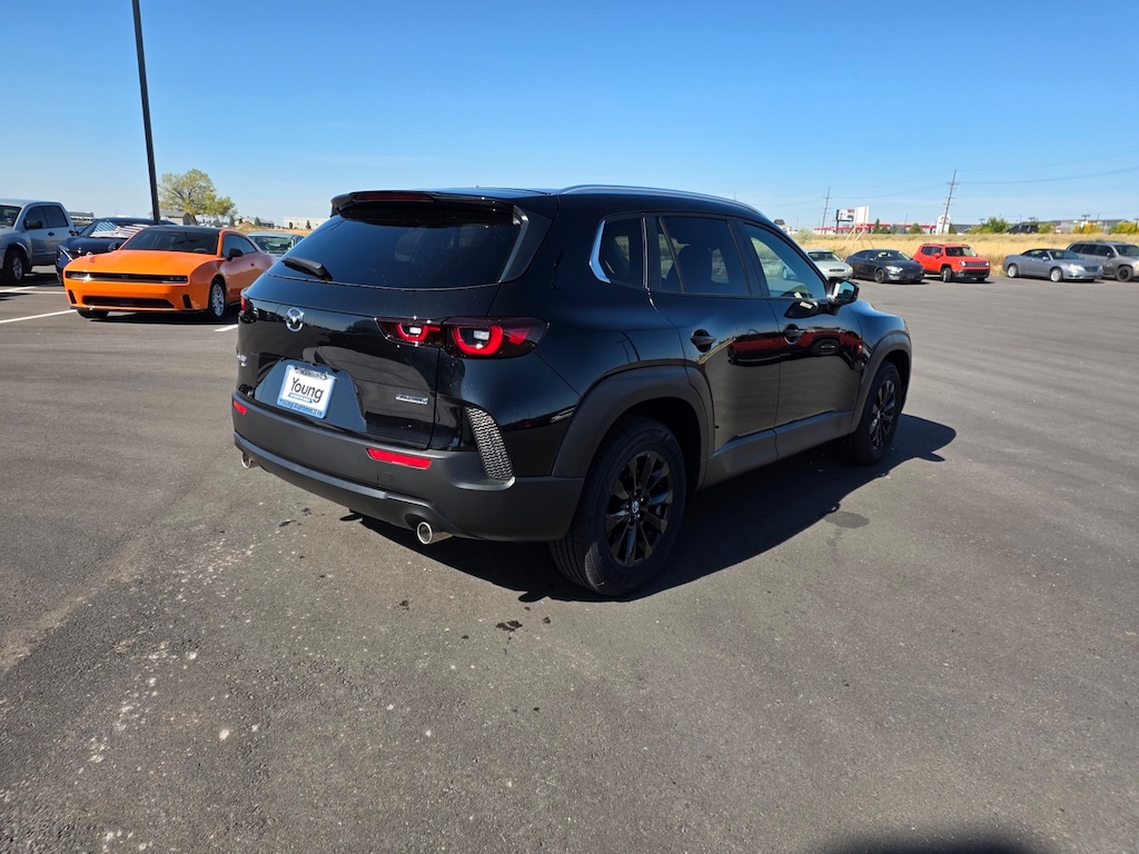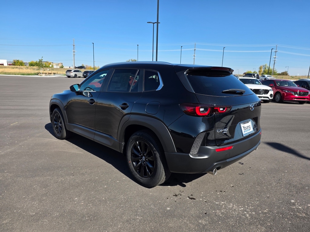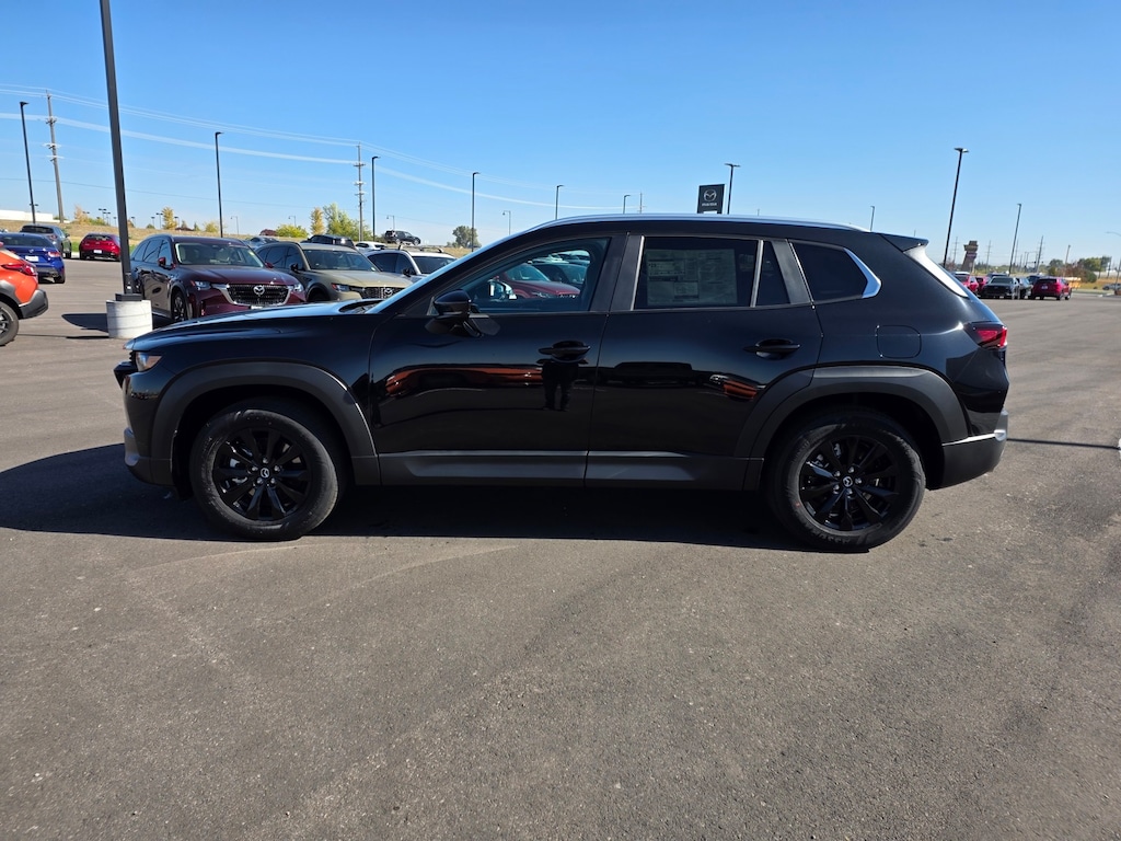 Jet Black Mica 2025 Mazda CX-50 2.5 S Select Package AWD 6-Speed Automatic SKYACTIV® 2.5L 4-Cylinder DOHC 16V All-Weather Floor Mats, Apple CarPlay and Android Auto, Auto High-beam Headlights, Brake assist, Cargo Liner w/Seatback Protection, Dual front impact airbags, Dual front side impact airbags, Electronic Stability Control, Emergency communication system: MAZDA CONNECT, Front anti-roll bar, Front Bucket Seats, Front dual zone A/C, Front wheel independent suspension, Half Leatherette Seat Trim, Illuminated entry, Knee airbag, Leather Shift Knob, Leather steering wheel, Occupant sensing airbag, Overhead airbag, Power door mirrors, Rain sensing wipers, Remote keyless entry, Roadside Assistance Kit, Speed control, Speed-sensing steering, Telescoping steering wheel, Tilt steering wheel, Turn signal indicator mirrors, Weather Package, Wheels: 17" x 7J Aluminum Alloy. 25/31 City/Highway MPG