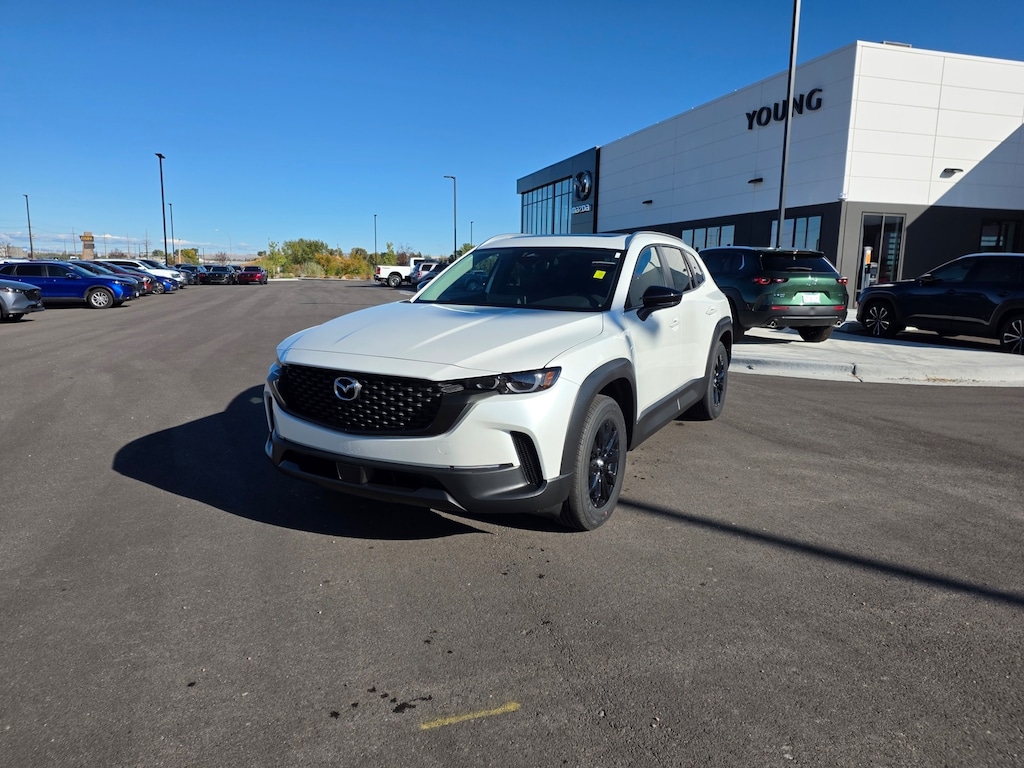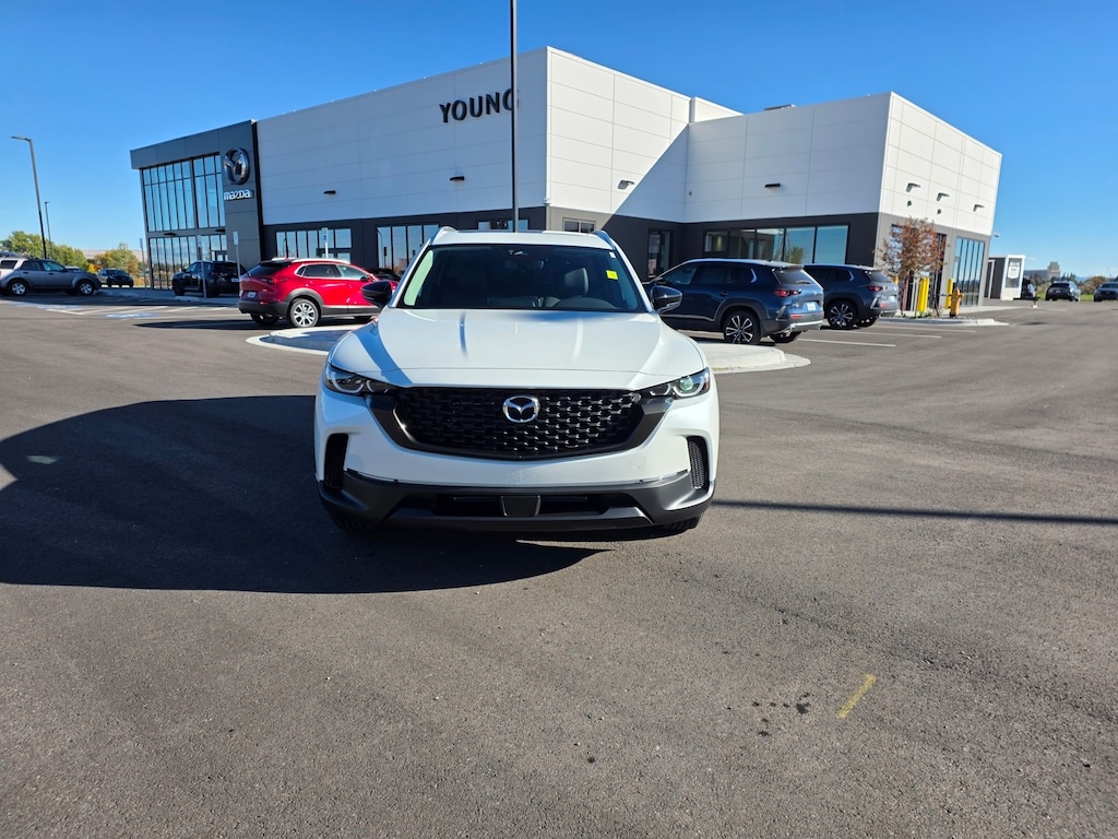 Wind Chill Pearl 2025 Mazda CX-50 2.5 S Premium Package AWD 6-Speed Automatic SKYACTIV® 2.5L 4-Cylinder DOHC 16V 12 Speakers: BOSE Premium Audio, Apple CarPlay and Android Auto, Auto High-beam Headlights, Brake assist, Dual front impact airbags, Dual front side impact airbags, Electronic Stability Control, Emergency communication system: MAZDA CONNECT, Front anti-roll bar, Front dual zone A/C, Front wheel independent suspension, Half Leatherette Seat Trim, Heated door mirrors, Heated Front Bucket Seats, Illuminated entry, Knee airbag, Leather Shift Knob, Leather steering wheel, Occupant sensing airbag, Overhead airbag, Power door mirrors, Power driver seat, Power Liftgate, Power moonroof, Rain sensing wipers, Remote keyless entry, Speed control, Speed-sensing steering, Telescoping steering wheel, Tilt steering wheel, Turn signal indicator mirrors, Wheels: 17" x 7J Aluminum Alloy, Wind Chill Pearl Paint. 25/31 City/Highway MPG