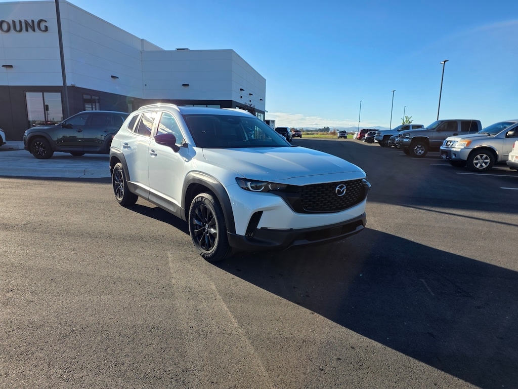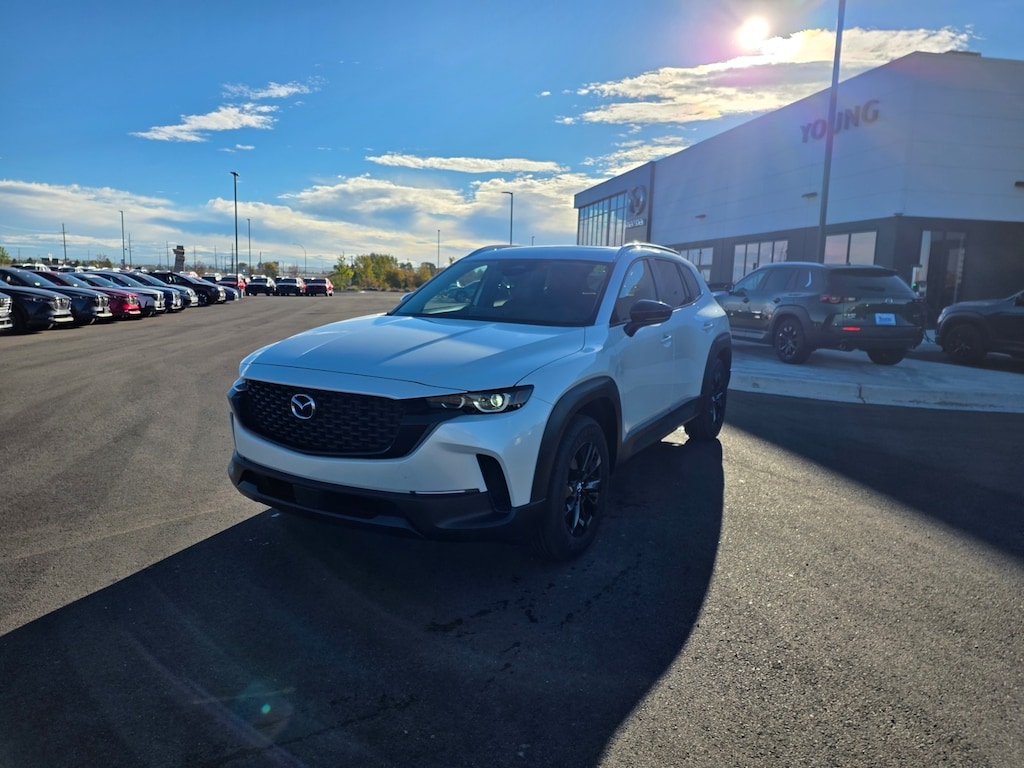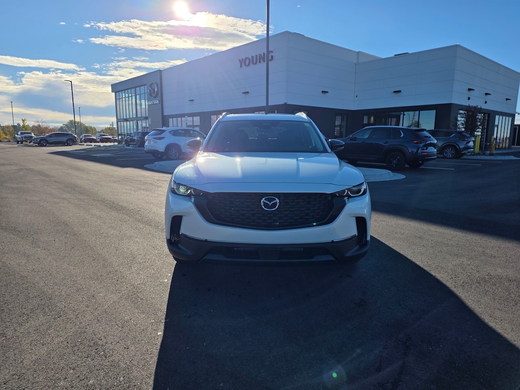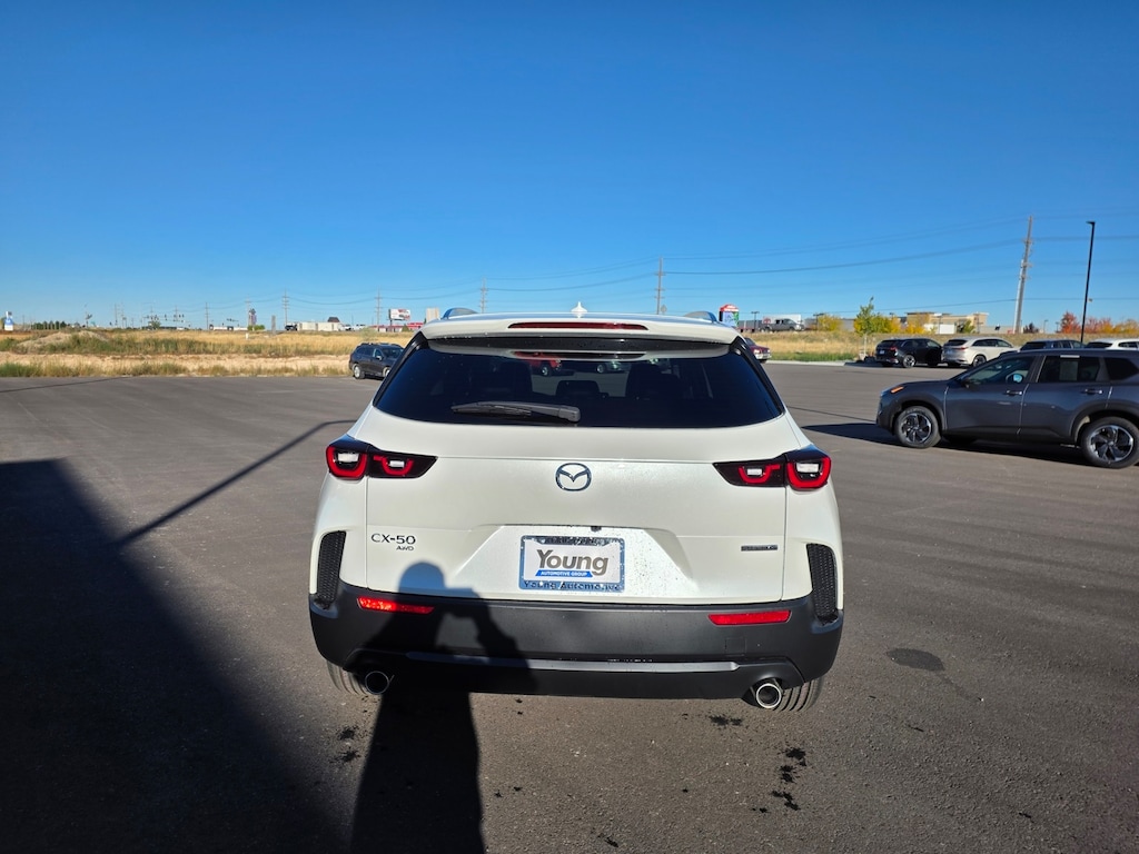Wind Chill Pearl 2025 Mazda CX-50 2.5 S Premium Package AWD 6-Speed Automatic SKYACTIV® 2.5L 4-Cylinder DOHC 16V 12 Speakers: BOSE Premium Audio, Apple CarPlay and Android Auto, Auto High-beam Headlights, Brake assist, Dual front impact airbags, Dual front side impact airbags, Electronic Stability Control, Emergency communication system: MAZDA CONNECT, Front anti-roll bar, Front dual zone A/C, Front wheel independent suspension, Half Leatherette Seat Trim, Heated door mirrors, Heated Front Bucket Seats, Illuminated entry, Knee airbag, Leather Shift Knob, Leather steering wheel, Occupant sensing airbag, Overhead airbag, Power door mirrors, Power driver seat, Power Liftgate, Power moonroof, Rain sensing wipers, Remote keyless entry, Speed control, Speed-sensing steering, Telescoping steering wheel, Tilt steering wheel, Turn signal indicator mirrors, Wheels: 17" x 7J Aluminum Alloy, Wind Chill Pearl Paint. 25/31 City/Highway MPG