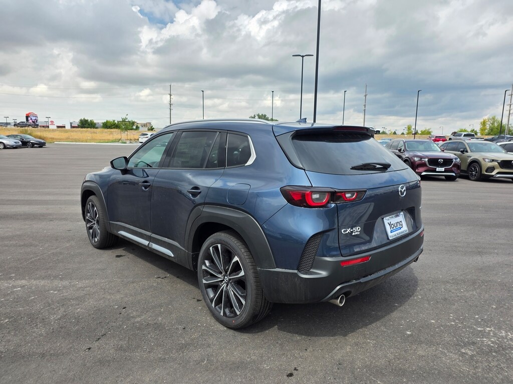 Ingot Blue Metallic 2025 Mazda CX-50 2.5 S Premium Plus Package AWD 6-Speed Automatic SKYACTIV® 2.5L 4-Cylinder DOHC 16V 12 Speakers: BOSE Premium Audio, 20" x 8J Aluminum Alloy Wheels, Apple CarPlay and Android Auto, Auto High-beam Headlights, Auto-dimming Rear-View mirror, Brake assist, Dual front impact airbags, Dual front side impact airbags, Electronic Stability Control, Emergency communication system: MAZDA CONNECT, Front anti-roll bar, Front dual zone A/C, Front wheel independent suspension, Heads-Up Display, Heated & Ventilated Front Bucket Seats, Heated door mirrors, Illuminated entry, Knee airbag, Leather Seat Trim, Leather Shift Knob, Leather steering wheel, Occupant sensing airbag, Overhead airbag, Power door mirrors, Power driver seat, Power Liftgate, Power moonroof, Power passenger seat, Rain sensing wipers, Remote keyless entry, Speed-sensing steering, Telescoping steering wheel, Tilt steering wheel, Turn signal indicator mirrors. 25/31 City/Highway MPG