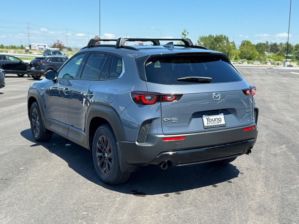 Polymetal Gray Metallic 2025 Mazda CX-50 Hybrid Premium AWD eCVT 2.5L 4-Cylinder 12 Speakers: BOSE Premium Audio, Apple CarPlay and Android Auto, Auto High-beam Headlights, Auto-dimming Rear-View mirror, Black Cross Bars, Dual front impact airbags, Dual front side impact airbags, Exterior Parking Camera Rear, Front & Rear Splash Guards, Front anti-roll bar, Front dual zone A/C, Front wheel independent suspension, Heated door mirrors, Heated front seats, Illuminated entry, Knee airbag, Leather Seat Trim, Leather Shift Knob, Leather steering wheel, Memory seat, Occupant sensing airbag, Overhead airbag, Polymetal Gray Metallic Paint, Power driver seat, Power Liftgate, Power moonroof, Power passenger seat, Rain sensing wipers, Rear window defroster, Rear window wiper, Remote keyless entry, Telescoping steering wheel, Tilt steering wheel, Turn signal indicator mirrors, Wheels: 17" x 7J Black Metallic Finish Alloy. 39/37 City/Highway MPG