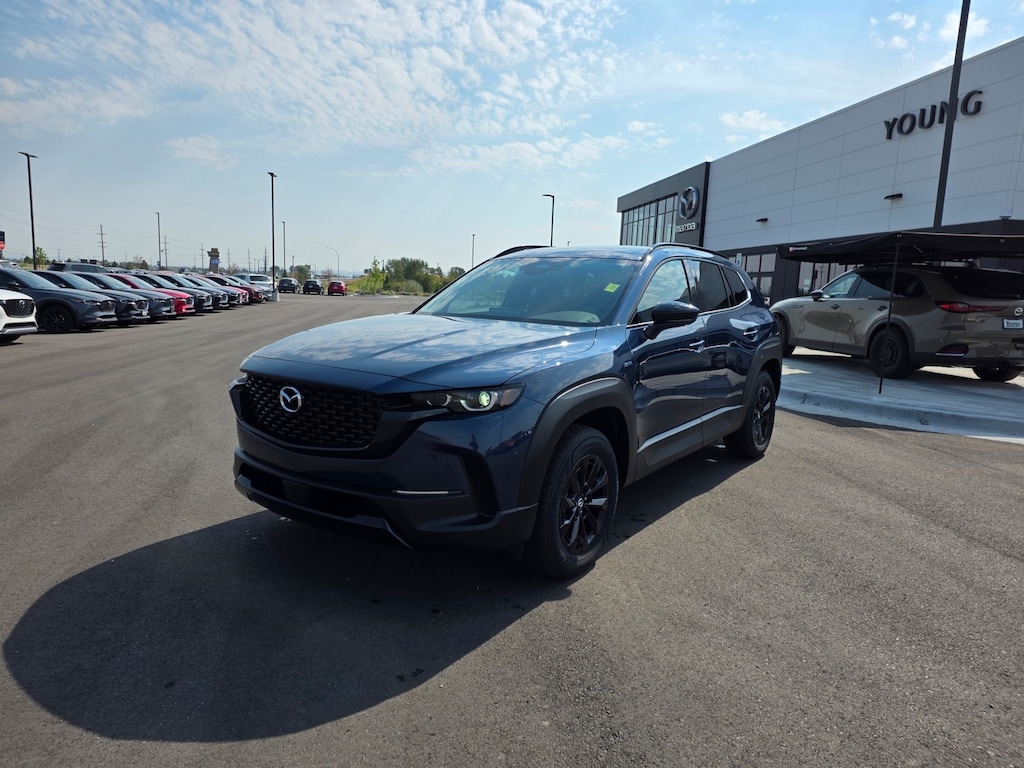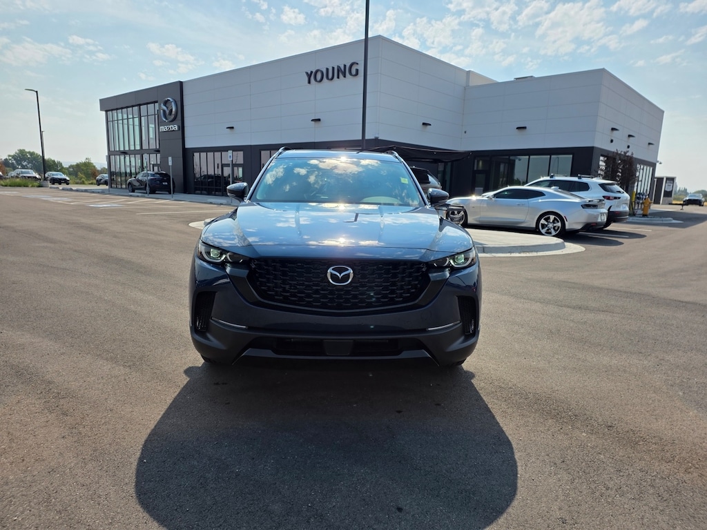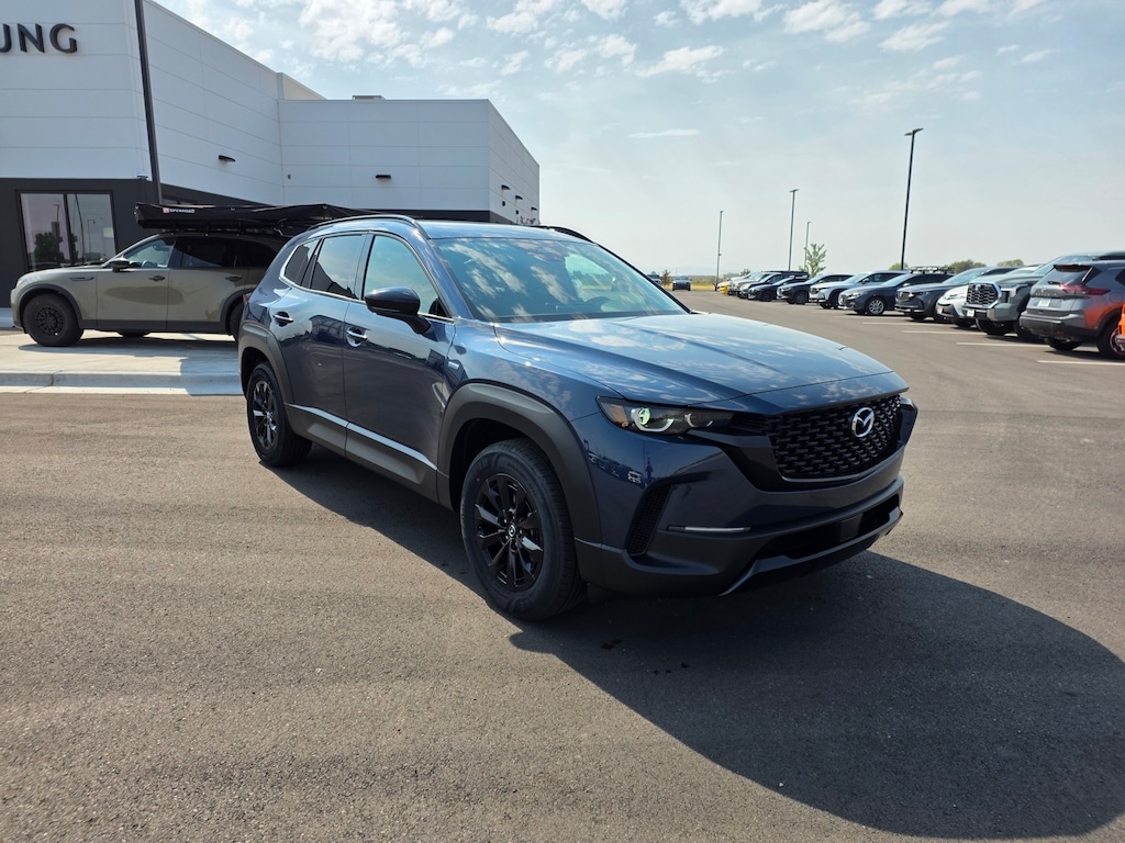 Ingot Blue Metallic 2025 Mazda CX-50 Hybrid Premium AWD eCVT 2.5L 4-Cylinder 12 Speakers: BOSE Premium Audio, Apple CarPlay and Android Auto, Auto High-beam Headlights, Auto-dimming Rear-View mirror, Brake assist, Delay-off headlights, Dual front impact airbags, Dual front side impact airbags, Electronic Stability Control, Emergency communication system: MAZDA CONNECT, Front anti-roll bar, Front Bucket Seats, Front dual zone A/C, Front wheel independent suspension, Heated door mirrors, Heated front seats, Illuminated entry, Knee airbag, Leather Seat Trim, Leather Shift Knob, Leather steering wheel, Memory seat, Occupant sensing airbag, Overhead airbag, Power door mirrors, Power driver seat, Power Liftgate, Power moonroof, Power passenger seat, Rain sensing wipers, Remote keyless entry, Speed control, Speed-sensing steering, Tilt steering wheel, Turn signal indicator mirrors, Wheels: 17" x 7J Black Metallic Finish Alloy. 39/37 City/Highway MPG