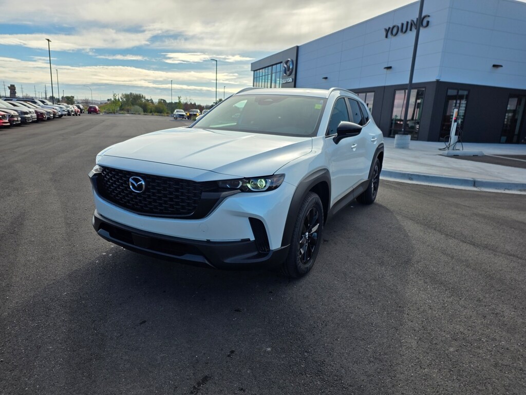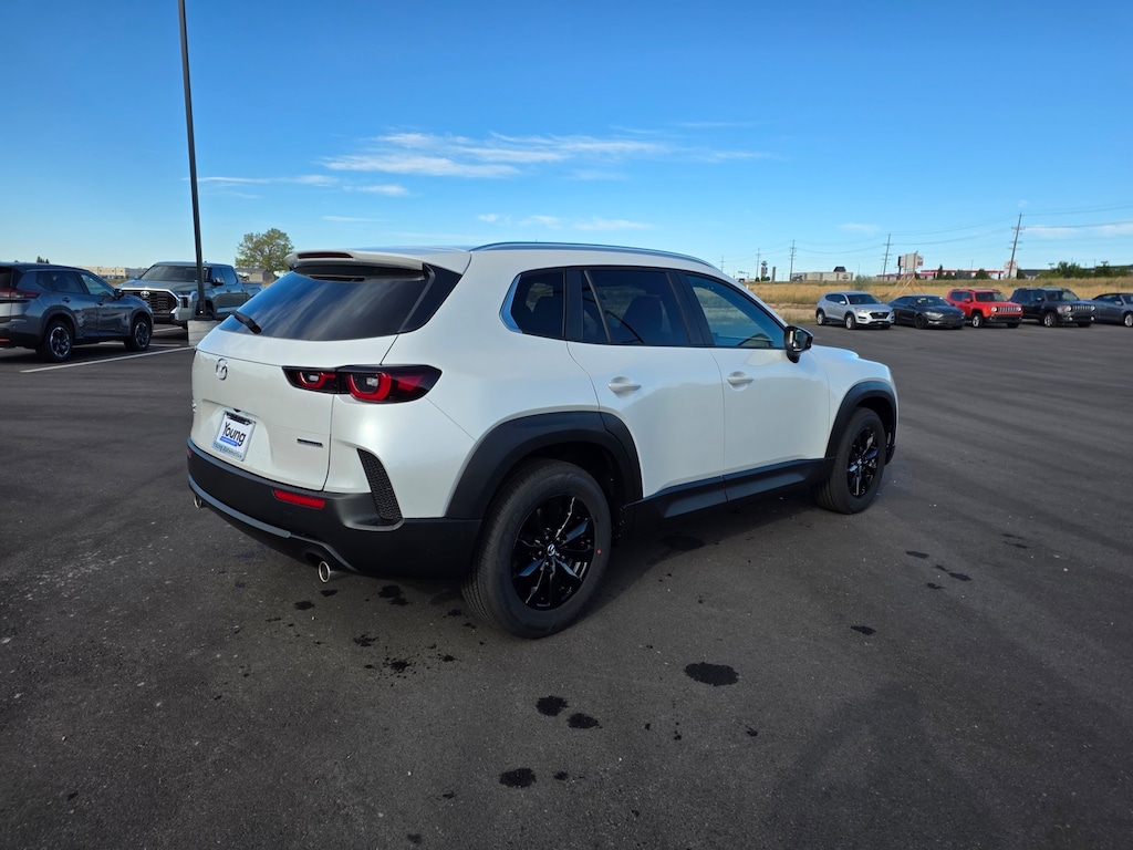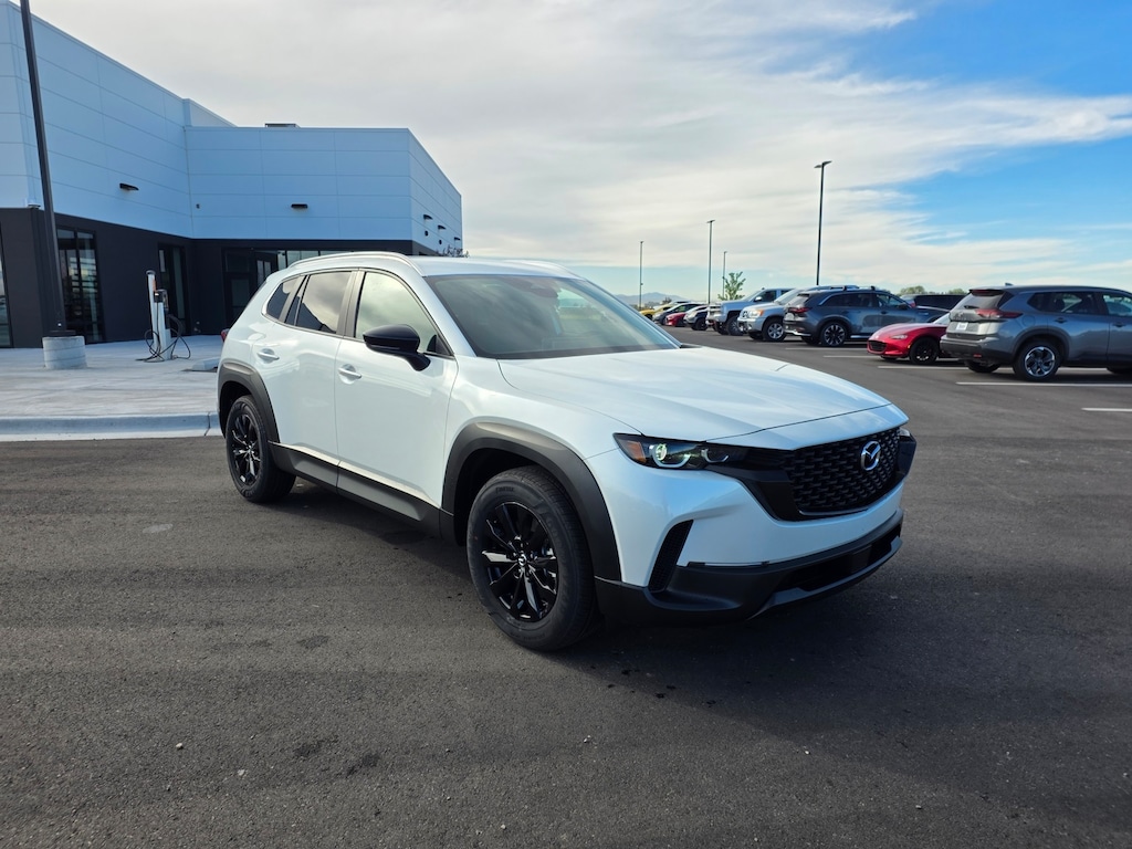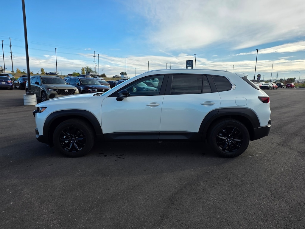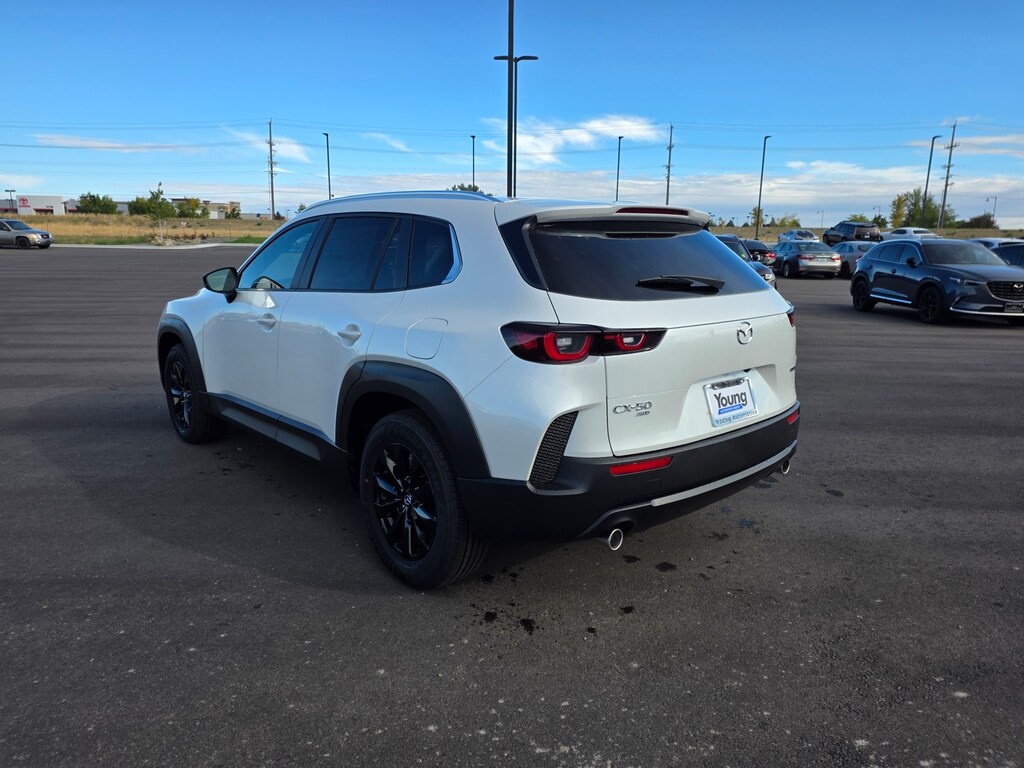 Wind Chill Pearl 2025 Mazda CX-50 2.5 S Select Package AWD 6-Speed Automatic SKYACTIV® 2.5L 4-Cylinder DOHC 16V Apple CarPlay and Android Auto, Auto High-beam Headlights, Brake assist, Dual front impact airbags, Dual front side impact airbags, Emergency communication system: MAZDA CONNECT, Front anti-roll bar, Front Bucket Seats, Front dual zone A/C, Front wheel independent suspension, Half Leatherette Seat Trim, Illuminated entry, Knee airbag, Leather Shift Knob, Leather steering wheel, Occupant sensing airbag, Overhead airbag, Rain sensing wipers, Remote keyless entry, Speed control, Speed-sensing steering, Telescoping steering wheel, Tilt steering wheel, Turn signal indicator mirrors, Wheels: 17" x 7J Aluminum Alloy. 25/31 City/Highway MPG
