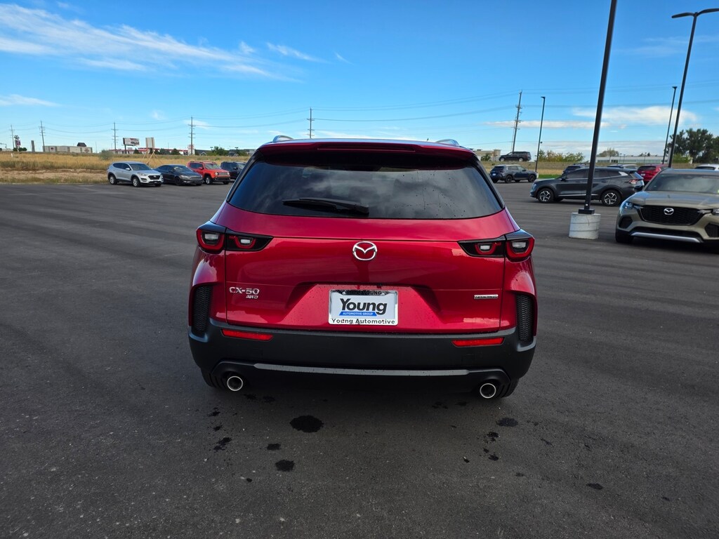 Soul Red Crystal Metallic 2025 Mazda CX-50 2.5 S Select Package AWD 6-Speed Automatic SKYACTIV® 2.5L 4-Cylinder DOHC 16V Apple CarPlay and Android Auto, Auto High-beam Headlights, Dual front impact airbags, Dual front side impact airbags, Electronic Stability Control, Emergency communication system: MAZDA CONNECT, Front anti-roll bar, Front Bucket Seats, Front dual zone A/C, Front wheel independent suspension, Half Leatherette Seat Trim, Illuminated entry, Knee airbag, Leather Shift Knob, Leather steering wheel, Occupant sensing airbag, Overhead airbag, Power door mirrors, Rain sensing wipers, Remote keyless entry, Speed control, Speed-sensing steering, Telescoping steering wheel, Tilt steering wheel, Turn signal indicator mirrors, Wheels: 17" x 7J Aluminum Alloy. 25/31 City/Highway MPG