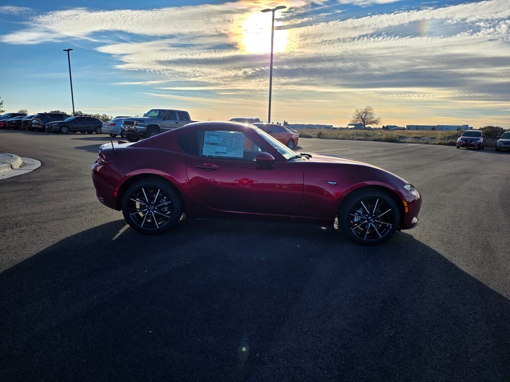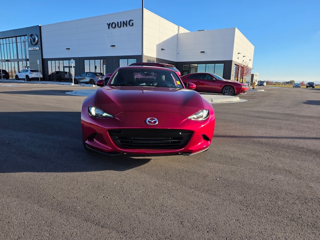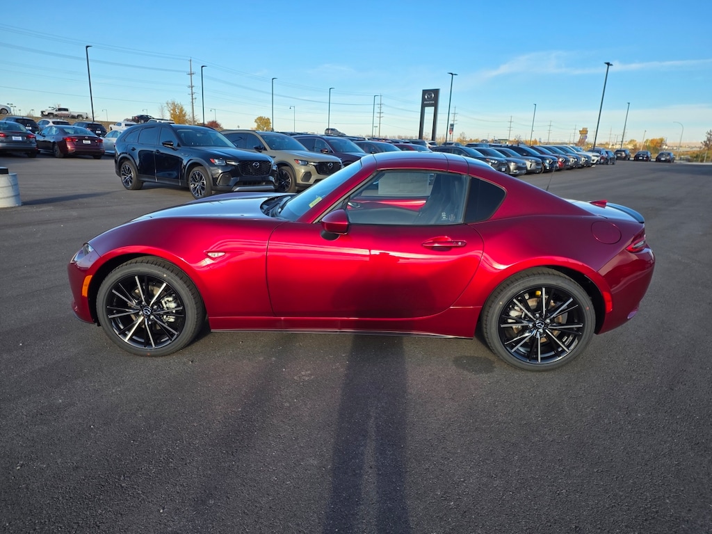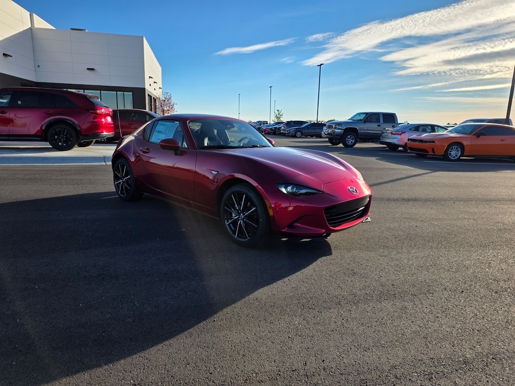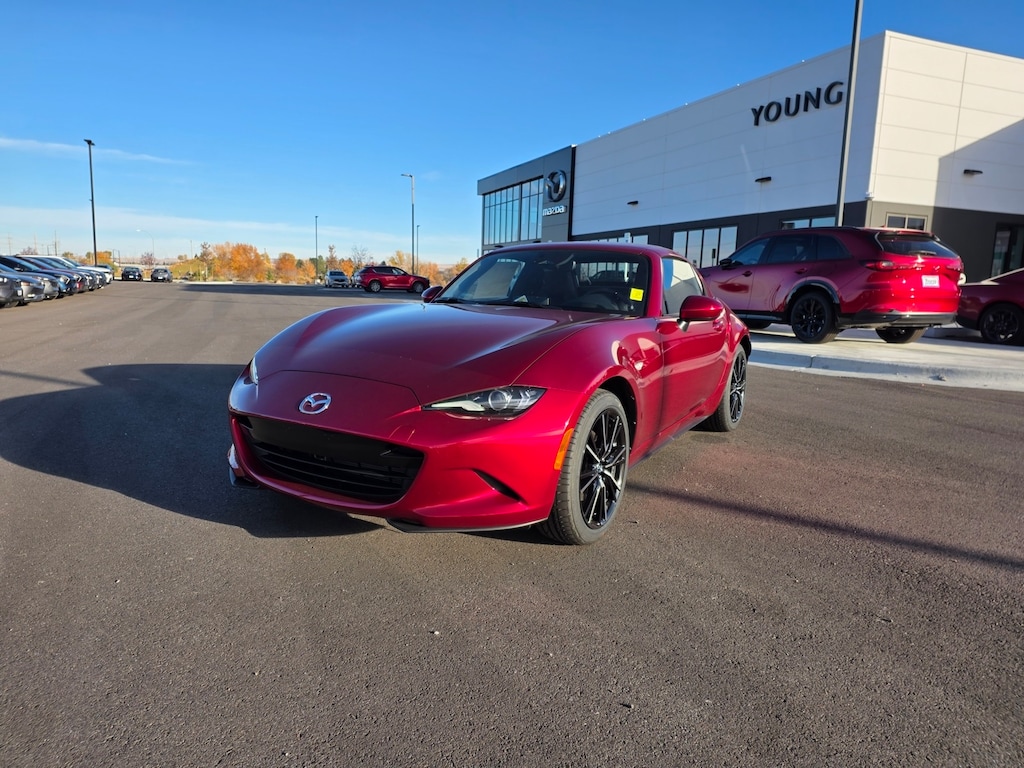 Soul Red Crystal Metallic 2025 Mazda MX-5 Miata RF Grand Touring RWD 6-Speed Manual 2.0L 4-Cylinder DOHC 16V 4-Wheel Disc Brakes, 9 Speakers: BOSE Premium Audio, ABS brakes, Apple CarPlay and Android Auto, Auto High-beam Headlights, Auto-dimming door mirrors, Auto-dimming Rear-View mirror, Brake assist, Convertible HardTop, Convertible roof wind blocker, Driver vanity mirror, Dual front impact airbags, Dual front side impact airbags, Electronic Stability Control, Emergency communication system: MAZDA CONNECT, Exterior Parking Camera Rear, Four wheel independent suspension, Front anti-roll bar, Fully automatic headlights, Garage door transmitter: HomeLink, Glass rear window, Heated door mirrors, Heated Front Bucket Seats, Illuminated entry, Leather Shift Knob, Leather-Trimmed Upholstery, MAZDA CONNECT Infotainment System, Occupant sensing airbag, Passenger vanity mirror, Power convertible roof, Power door mirrors, Radio: Bose Audio System w/AudioPilot, Rain sensing wipers, Rear anti-roll bar, Rear window defroster, Remote keyless entry, Soul Red Crystal Metallic Paint, Speed control, Speed-sensing steering, Sport steering wheel, Tachometer, Telescoping steering wheel, Tilt steering wheel, Traction control, Wheels: 17" Black Metallic Finish Alloy. 26/34 City/Highway MPG