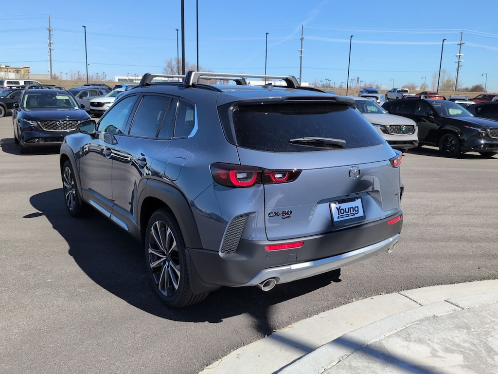 Polymetal Gray Metallic 2026 Mazda CX-50 2.5 Turbo Premium Plus AWD 6-Speed Automatic 2.5L I4 Turbocharged DOHC 16V LEV3-ULEV70 227hp 12 Speakers: BOSE Premium Audio, 4-Wheel Disc Brakes, ABS brakes, Apple CarPlay and Android Auto, Auto High-beam Headlights, Auto-dimming door mirrors, Auto-dimming Rear-View mirror, Dual front impact airbags, Dual front side impact airbags, Electronic Stability Control, Emergency communication system: MAZDA CONNECT, Front anti-roll bar, Front Bucket Seats, Front dual zone A/C, Front wheel independent suspension, Garage door transmitter: HomeLink, Heads-Up Display, Heated and Ventilated Front Seats with 3 Level Adjustment, Heated door mirrors, Heated rear seats, Heated steering wheel, Illuminated entry, Knee airbag, Leather Seat Trim, Leather Shift Knob, Leather steering wheel, Low tire pressure warning, Memory seat, Occupant sensing airbag, Overhead airbag, Power door mirrors, Power driver seat, Power Liftgate, Power moonroof, Power passenger seat, Rain sensing wipers, Rear window defroster, Rear window wiper, Speed-sensing steering, Telescoping steering wheel, Tilt steering wheel, Turn signal indicator mirrors, Variably intermittent wipers, Wheels: 20" x 8J Aluminum Alloy Black Metallic with Machining Cut. 23/29 City/Highway MPG