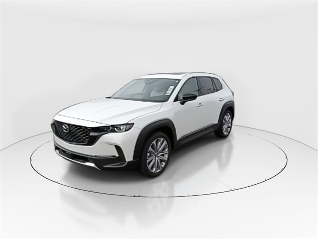 2026 Mazda CX-50 2.5 Turbo Wind Chill Pearl White AWD 6-Speed Automatic 2.5L I4 Turbocharged DOHC 16V LEV3-ULEV70 227hp 23/29 City/Highway MPG ABS brakes, Active Cruise Control, Alloy wheels, Electronic Stability Control, Front dual zone A/C, Heated door mirrors, Heated front seats, Illuminated entry, Leather Seat Trim, Low tire pressure warning, Power Liftgate, Power moonroof, Remote keyless entry, Traction control.