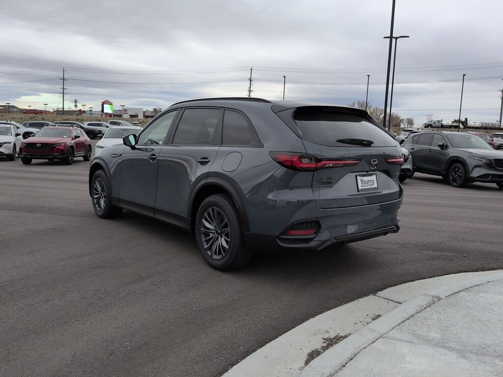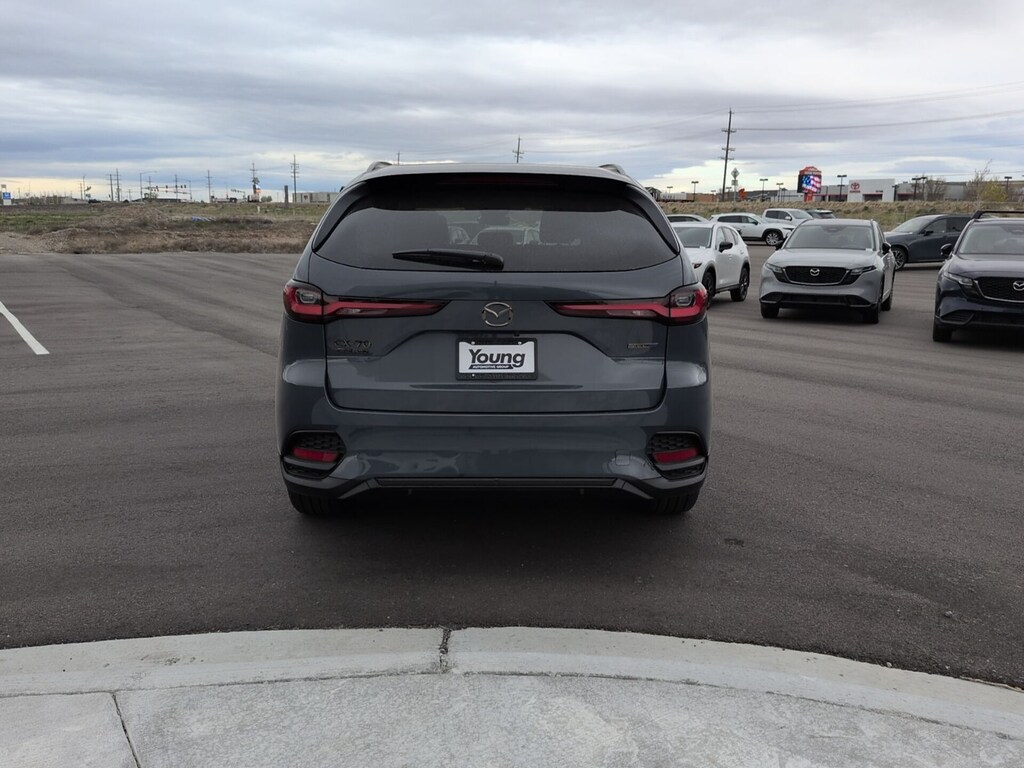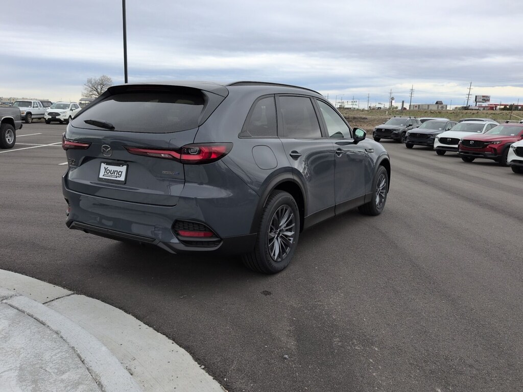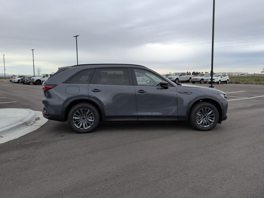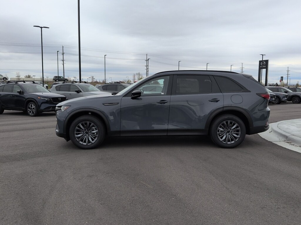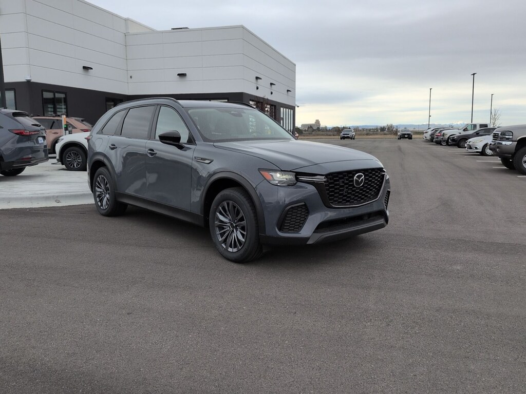 Polymetal Gray Metallic 2026 Mazda CX-70 PHEV SC AWD 8-Speed Automatic 2.5L I4 DOHC 16V LEV3-SULEV30 4-Wheel Disc Brakes, 8 Speakers, ABS brakes, Apple CarPlay and Android Auto, Auto High-beam Headlights, Auto-dimming Rear-View mirror, Black Cross Bars, Brake assist, Delay-off headlights, Dual front impact airbags, Dual front side impact airbags, Electronic Stability Control, Emergency communication system: MAZDA CONNECT, Four wheel independent suspension, Front anti-roll bar, Front Bucket Seats, Front dual zone A/C, Garage door transmitter: HomeLink, Heated door mirrors, Illuminated entry, Knee airbag, Leather Shift Knob, Leather steering wheel, Leatherette Seat Trim, Low tire pressure warning, Mazda Connected Services, Occupant sensing airbag, Overhead airbag, Polymetal Gray Metallic Paint, Power driver seat, Power Liftgate, Rain sensing wipers, Rear air conditioning, Rear anti-roll bar, Rear window defroster, Speed control, Speed-sensing steering, Telescoping steering wheel, Tilt steering wheel, Turn signal indicator mirrors, Wheels: 19" x 8J Aluminum Alloy.