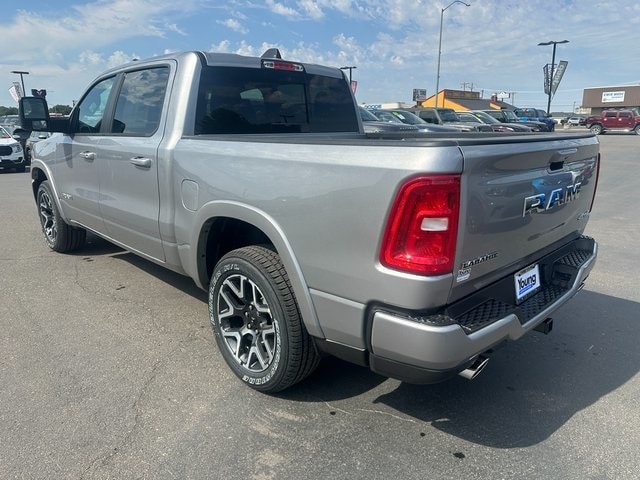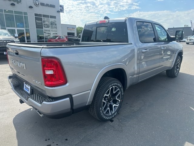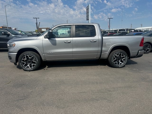 Billet Silver Metallic Clearcoat 2025 Ram 1500 Laramie 4WD 8-Speed Automatic 3.0L I6 Recent Arrival! , REAR CAMERA, APPLE CARPLAY/ANDROID AUTO, BLUETOOTH, #1 Seat Foam Cushion, 10 Speakers, 3 Rear Seat Head Restraints, 3.55 Rear Axle Ratio, 4 Way Front Headrests, 4-Wheel Disc Brakes, 4G LTE Wi-Fi Hot Spot, ABS brakes, Accent Color Premium Power Mirrors, Air Conditioning, Alloy wheels, AM/FM radio: SiriusXM with 360L, Anti-Spin Differential Rear Axle, Apple CarPlay, Apple CarPlay/Android Auto, Audio memory, Auto High-beam Headlights, Auto Power-Folding Mirrors, Auto-dimming door mirrors, Auto-Dimming Exterior Driver Mirror, Auto-Dimming Exterior Passenger Mirror, Auto-dimming Rear-View mirror, Automatic temperature control, Black Exterior Mirrors, Black Interior Accents, Black Painted Exterior Mirrors Caps, Body Color Front Bumper, Body Color Rear Bumper w/Step Pads, Brake assist, Bridgestone Brand Tires, Bucket Seats, Bumpers: chrome, Center Console Parts Module, Chrome Exterior Mirrors, Compass, Connected Travel & Traffic Services, Connectivity - US/Canada, Convex Wide-Angle Exterior Mirror Insert, Delay-off headlights, Driver door bin, Driver Seat Memory, Driver vanity mirror, Dual front impact airbags, Dual front side impact airbags, Electronic Stability Control, Exterior Mirrors Courtesy Lamps, Exterior Mirrors w/Heating Element, Exterior Mirrors w/Memory, Exterior Mirrors w/Supplemental Signals, Forward & Reverse Utility Lights, Front anti-roll bar, Front Center Armrest w/Storage, Front dual zone A/C, Front fog lights, Front License Plate Bracket, Front reading lights, Front Seat Back Map Pockets, Front wheel independent suspension, Full Length Upgraded Floor Console, Fully automatic headlights, Garage door transmitter, Google Android Auto, GPS Antenna Input, GPS Navigation, Grille Surround 3 Body Color Tex 2 Black, HD Radio, Heated door mirrors, Heated Front Seats, Heated front seats, Heated rear seats, Heated Second Row Seats, Heated Steering Wheel, Heated steering wheel, Illuminated entry, Integrated Voice Command w/Bluetooth, Laramie Level 1 Equipment Group, Leather steering wheel, Leather Trim 40/20/40 Bench Seat, Leather Trimmed Bucket Seats, Low tire pressure warning, Memory seat, Mirror Clearance/Running Lights, MOPAR Front & Rear Rubber Floor Mats, Navigation System, Occupant sensing airbag, Outside temperature display, Overhead airbag, Overhead console, Panic alarm, ParkView Rear Back-Up Camera, Passenger door bin, Passenger vanity mirror, Power 2-Way Driver Lumbar Adjust, Power 2-Way Passenger Lumbar Adjust, Power Adjust 8-Way Driver Seat, Power Adjust 8-Way Front Passenger Seat, Power door mirrors, Power driver seat, Power passenger seat, Power steering, Power Telescoping Mirrors, Power windows, Power-Adjustable Convex Aux Mirrors, Quick Order Package 21H Laramie, Radio data system, Radio: Uconnect 5 Nav w/12.0" Display, Rain Sensitive Windshield Wipers, RAM Grille Badge - Chrome, Rear 60/40 Folding Split Recline Seat, Rear anti-roll bar, Rear reading lights, Rear seat center armrest, Rear step bumper, Remote keyless entry, Remote Tailgate Release, Security system, SiriusXM w/360L, Speed control, Split folding rear seat, Sport Appearance Package, Sport Performance Hood, Steering wheel mounted audio controls, Tachometer, Telescoping steering wheel, Tilt steering wheel, Towing Technology Group, Traction control, Trailer Brake Control, Trailer Hitch Line-Up Assist, Trailer Light Check, Trailer Reverse Steering Control, Trailer Tire Pressure Monitoring System, Trailer Tow Group, Trailer Tow Mirrors, Trip computer, Turn signal indicator mirrors, USB Host Flip, Variably intermittent wipers, Ventilated Front Sea Price includes: $1000 - Driveability / Automobility Program. Exp. 01/05/2026 $500 - 2025 National 2025 First Responder Bonus Cash. Exp. 01/05/2026 $500 - 2025 National 2025 Military Bonus Cash. Exp. 01/05/2026 10% Msrp - 2025 National 10% Below MSRP . Exp. 11/03/2025 Price includes dealer added accessories.
