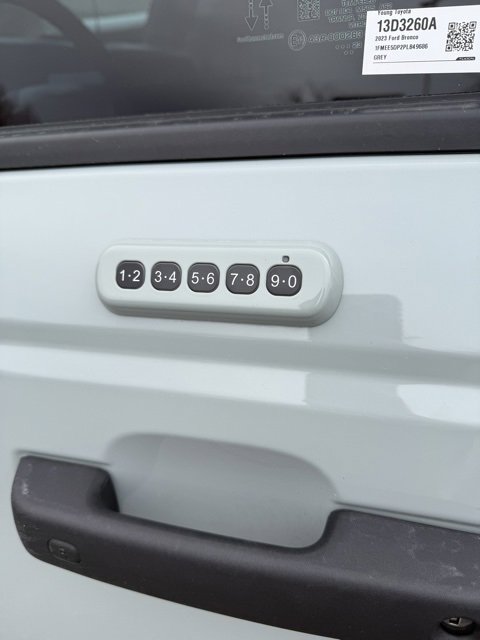 Cactus Gray 2023 Ford Bronco Base 4WD powered by the punchy 2.7L EcoBoost V6 and paired with a smooth 10-speed automatic transmission. This Bronco stays true to the nameplates legendary roots with rugged capability, modern tech, and unmistakable style. The advanced 4WD system delivers confidence on dirt, snow, and pavement alike, while the turbocharged V6 provides strong, responsive power for both daily driving and weekend adventures. With its upright stance, removable-style design cues, and iconic Bronco presence, this SUV is built for drivers who want something bold, capable, and undeniably fun behind the wheel.