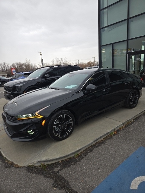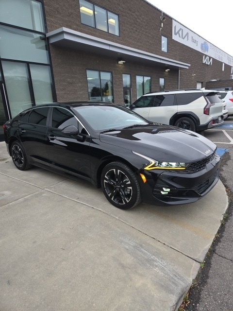 2023 Kia K5 GT-Line Ebony Black Certified. FWD 8-Speed Automatic 1.6L I4 DGI Turbocharged DOHC 16V LEV3-ULEV70 180hp Recent Arrival! 27/37 City/Highway MPG